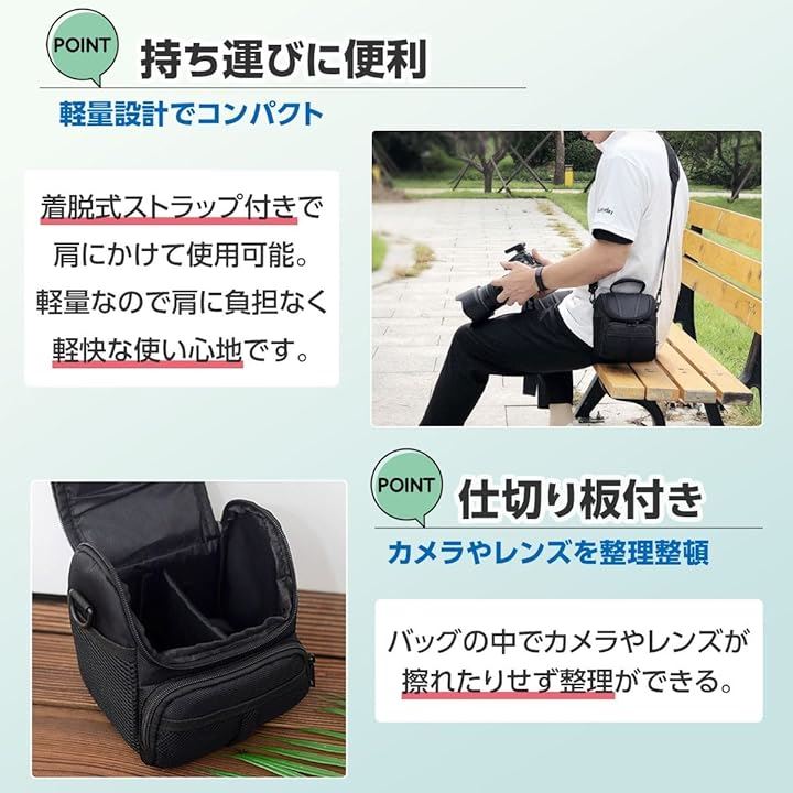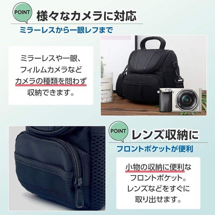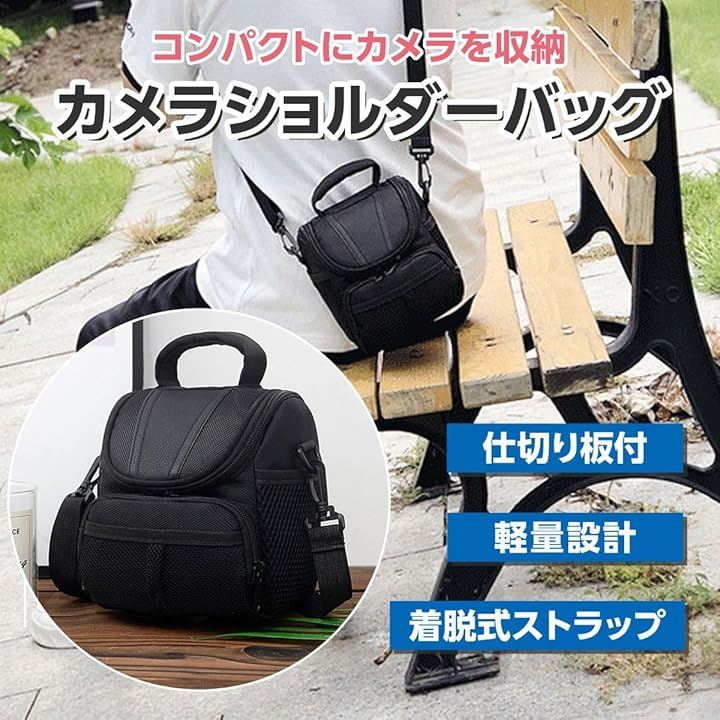 カメラバッグ コンパクトカメラ用収納ケース ショルダーバッグ レンズケース 軽量 多機能 ショルダー型 仕切り付き 男女兼用