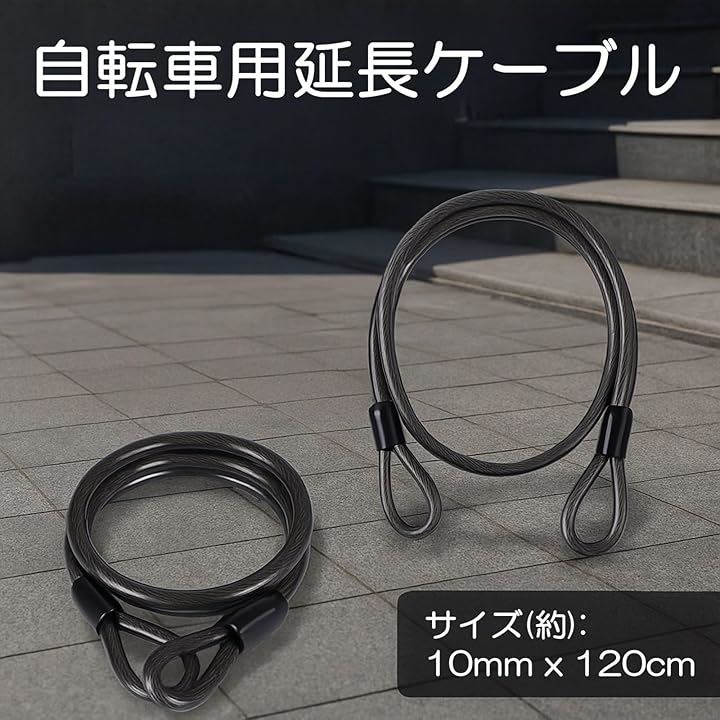 自転車用 延長ケーブル 1.2m 太さ10mm 盗難防止
