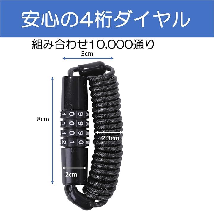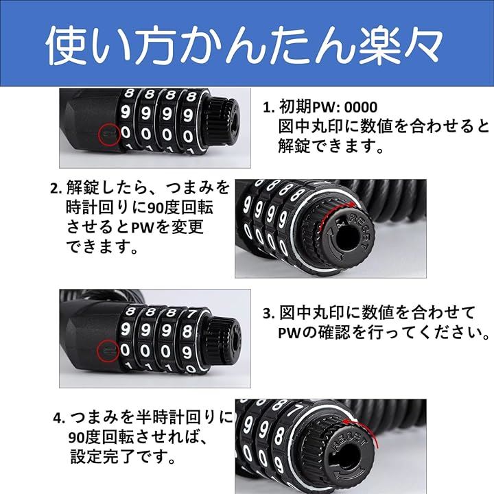 自転車 ワイヤーロック 4桁ダイヤル式 150cm 軽量 鍵
