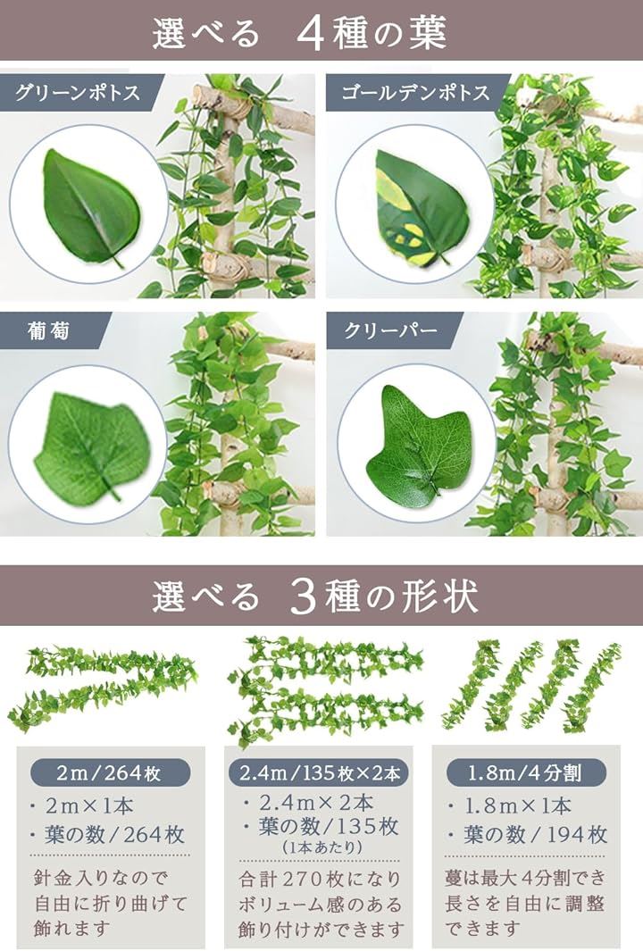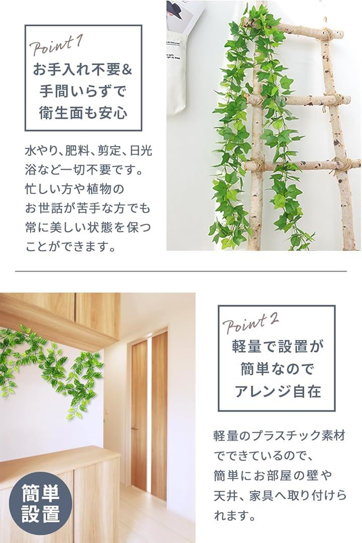 Tierneys フェイクグリーン ガーランド フェイクリーフ インテリア 人工観葉植物 壁掛け 吊り下げ 屋内 屋外 ベランダ ガーデニング