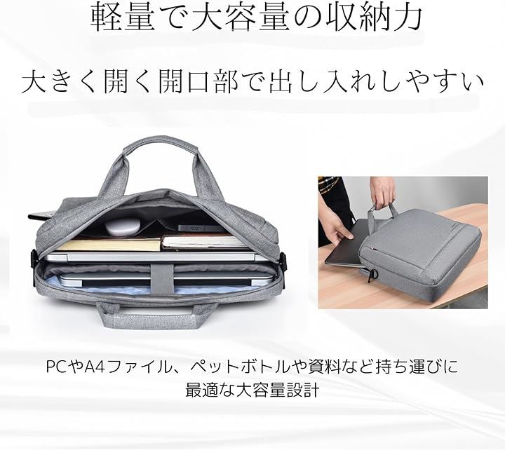 ・14インチノートPCやMacBook、iPadも余裕で収納できる大容量ブリーフケース。