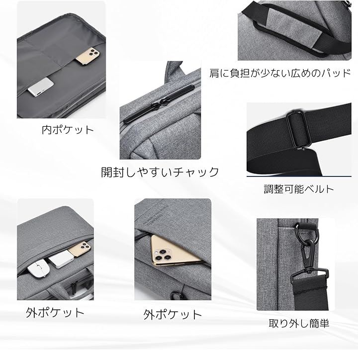 ・YKKファスナー採用で開閉しやすく、静音設計で電車内や会議室でも気を遣わない。
