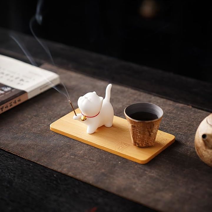猫セラミック お香ホルダーセット 瞑想 ヨガ用