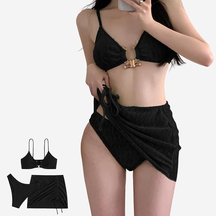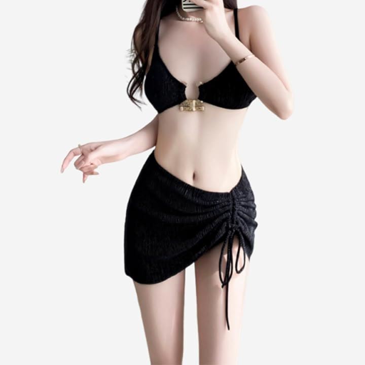 ビキニ 水着 レディース 3点セット トップ ショーツ ミニスカート パッド 付き 体型カバー ノンワイヤー 無地 びきに みずぎ 三角ビキニ ビーチ 海水浴 リゾート 夏 サマー さまー シンプル