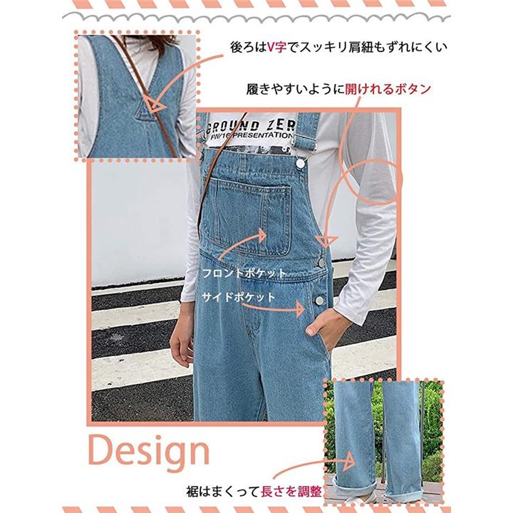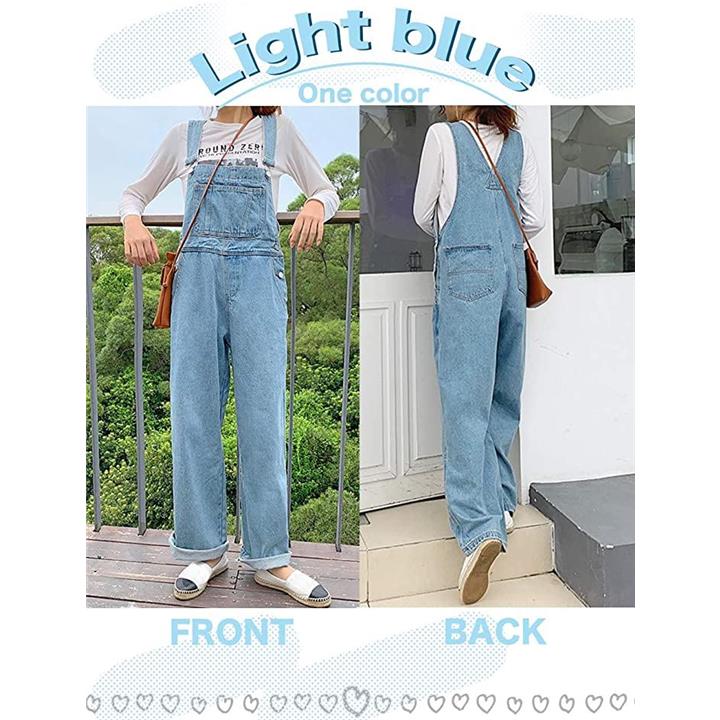 「GIVEK」デニム オーバーオール ゆったり ワイドパンツ 体型カバー レディース ジーンズ オールインワン サロペット (ライトブルー, M) |