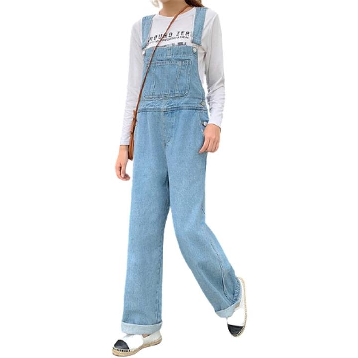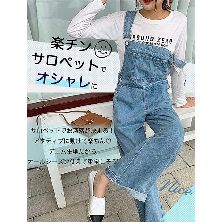 「GIVEK」デニム オーバーオール ゆったり ワイドパンツ 体型カバー レディース ジーンズ オールインワン サロペット (ライトブルー, L) |