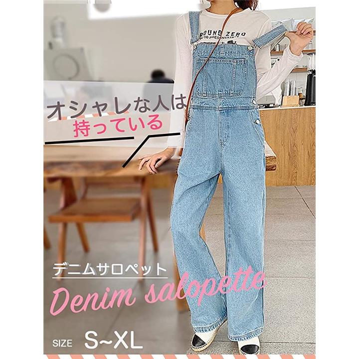 「GIVEK」デニム オーバーオール ゆったり ワイドパンツ 体型カバー レディース ジーンズ オールインワン サロペット (ライトブルー, S) |