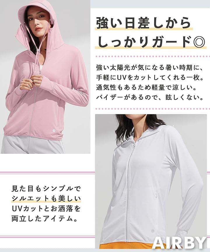 [エアバイ] ラッシュガード レディース 長袖 uvカット パーカー 薄手 夏服 ショッピング 観戦 ピクニック 便利 機能性 |