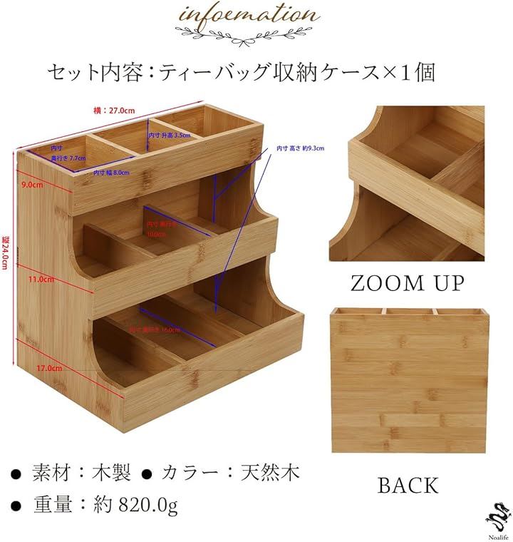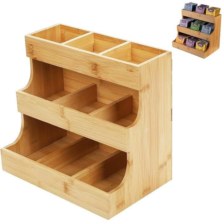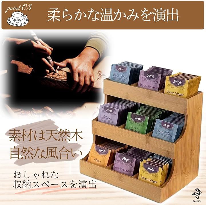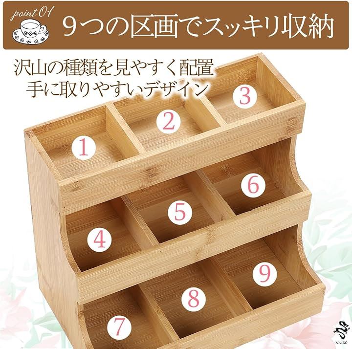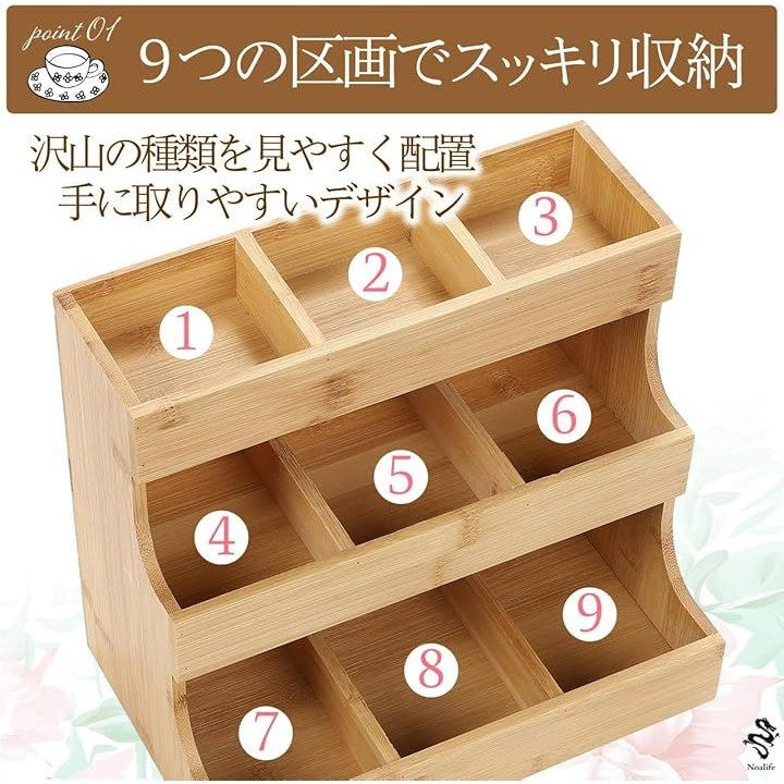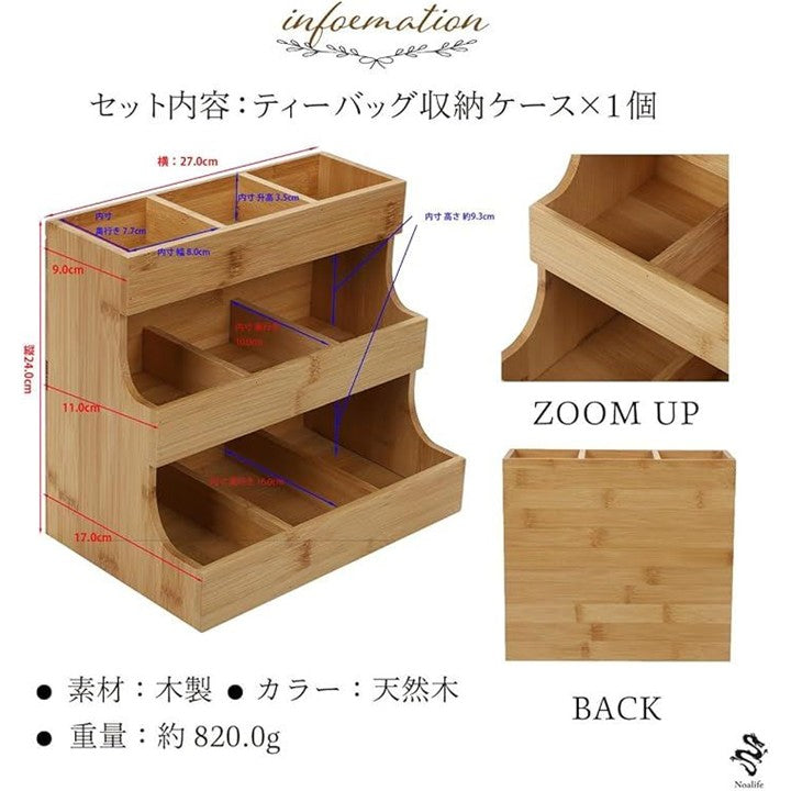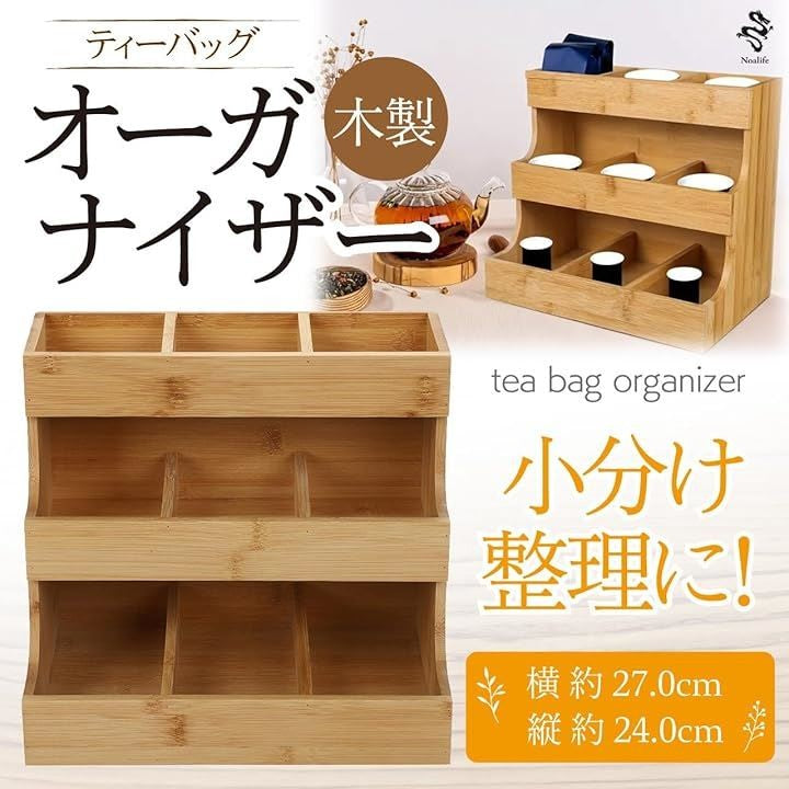 ティーバッグオーガナイザー ティーバッグ収納 ティーバッグケース ラック ティーバッグホルダー スパイスボックス 調味料 陳列棚 木製 3段