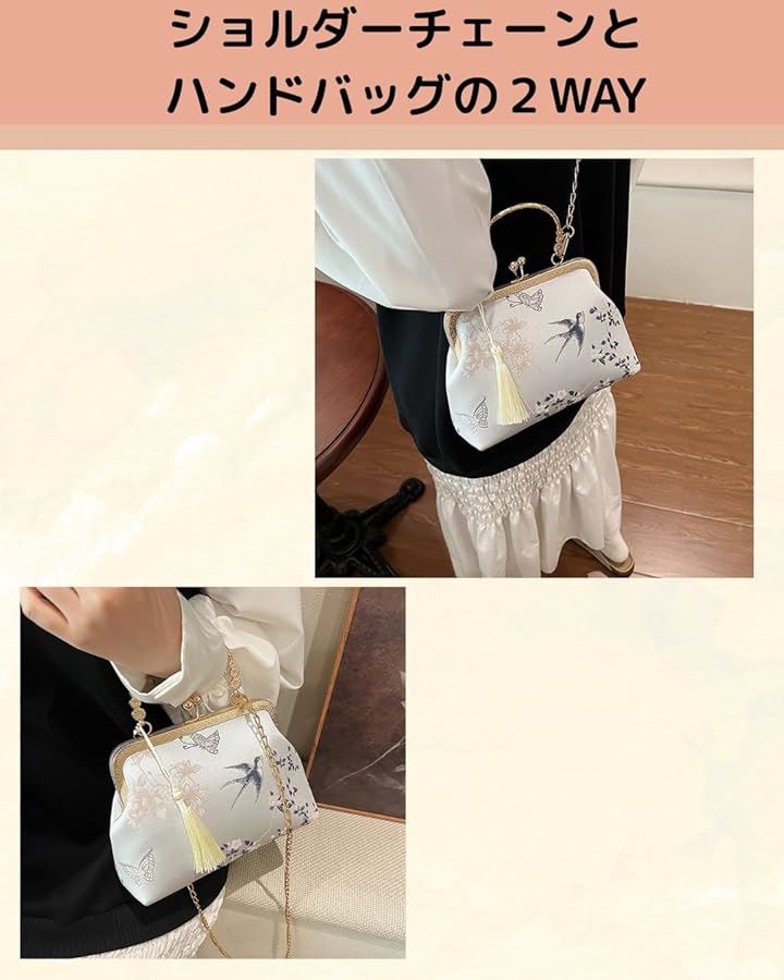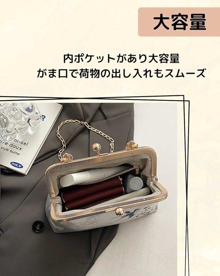 パーティーバッグ がま口 ハンドバッグ パール チェーン付 ポーチ レディース 浴衣 和装 振袖 卒業式 結婚式