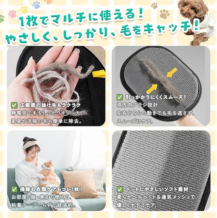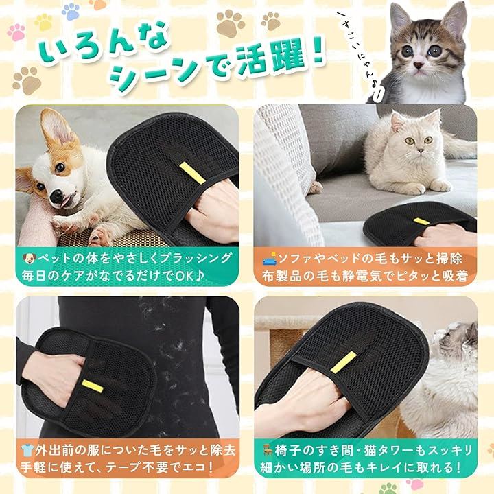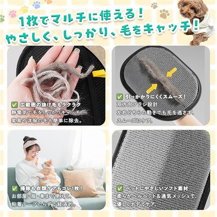 ペット静電気除去手袋 グローブ 犬 猫 イヌ ネコ トリミング 毛 お手入れ ペット脱毛手袋 両面グルーミンググローブ 快適で着用便利 優しく効果的なグルーミング体験