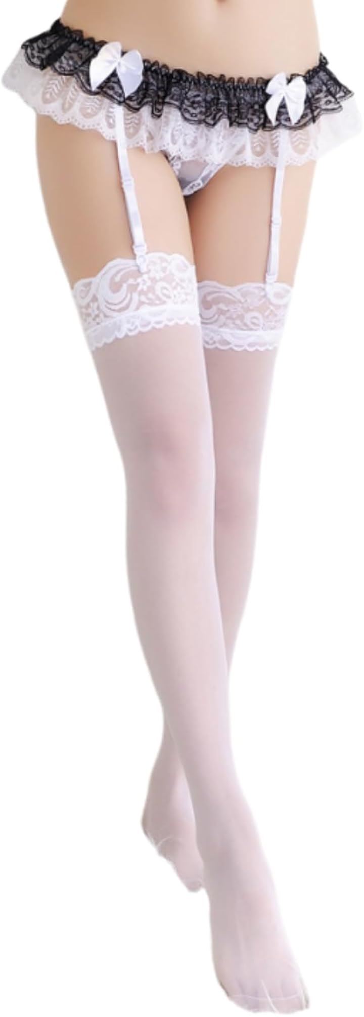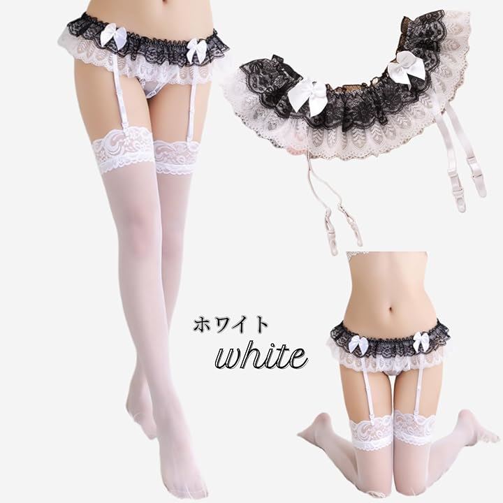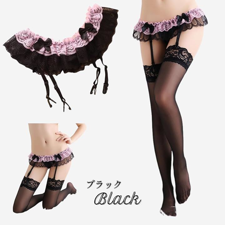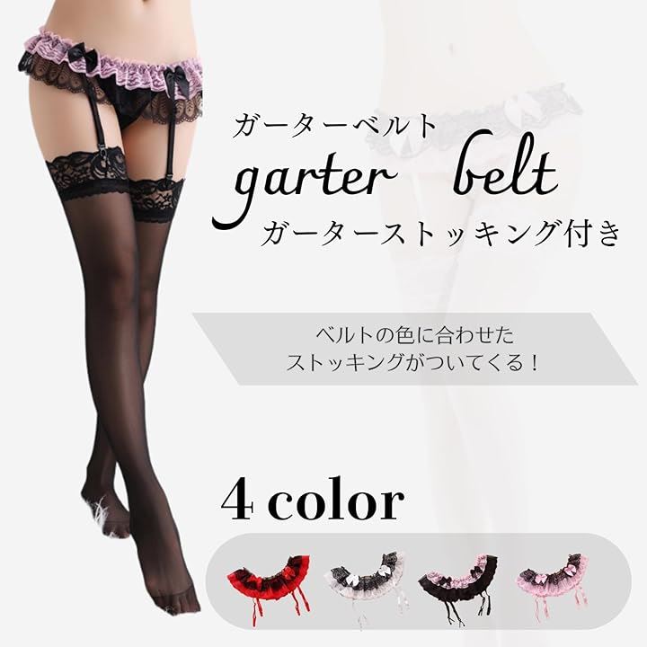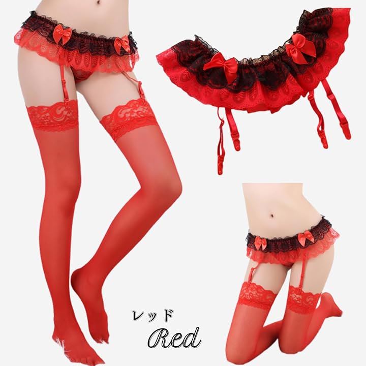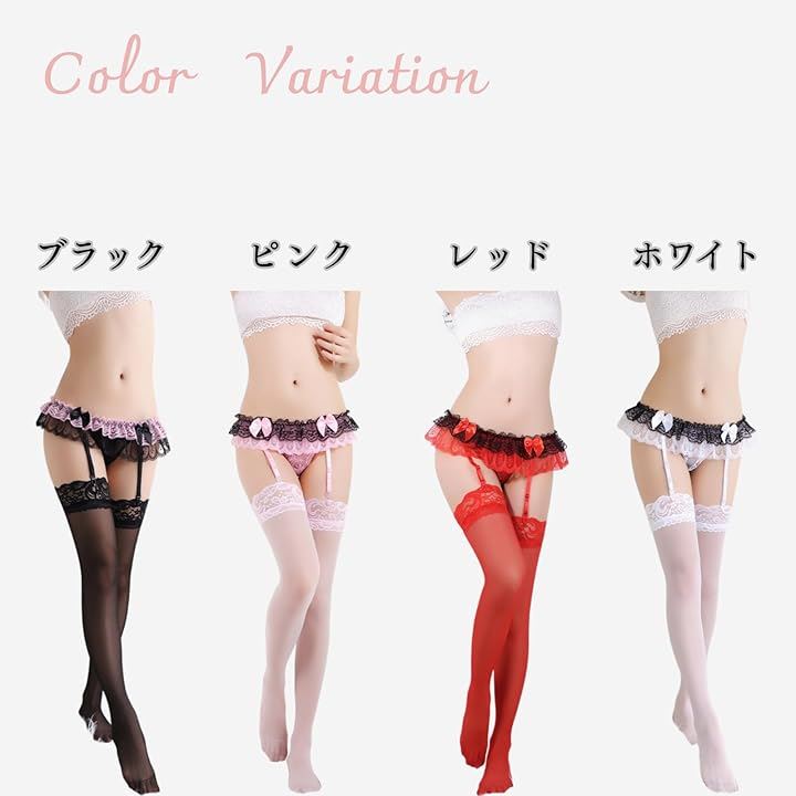 ガーターベルト ストッキング 付き レディース 下着 花柄レース リボン フリル 装飾 ランジェリー イベント用 レースベルト タイツ