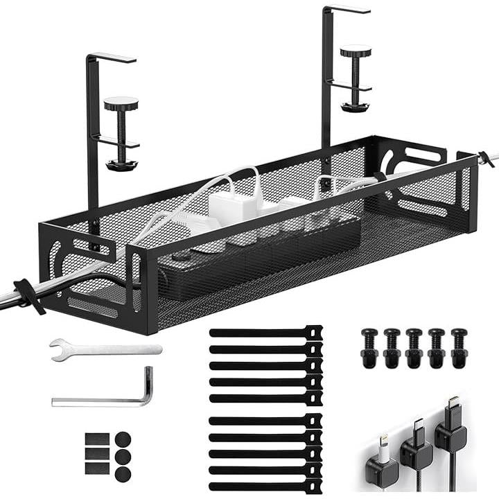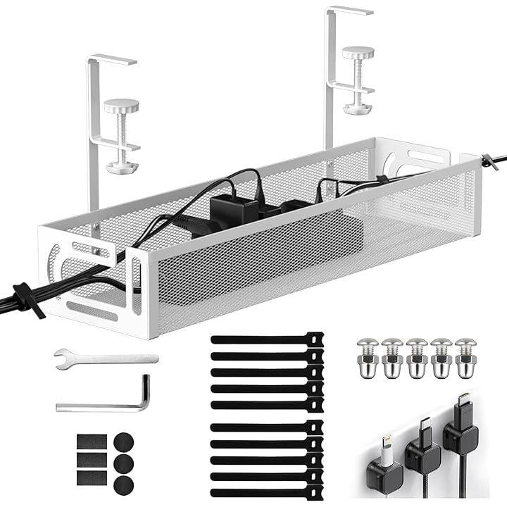 配線隠し ケーブルトレー デスク 収納 コード収納 デスク周り 穴あけ不要・工具不要・簡単設置 机下 ケーブルオーガナイザー スチール製 日本語説明書付き