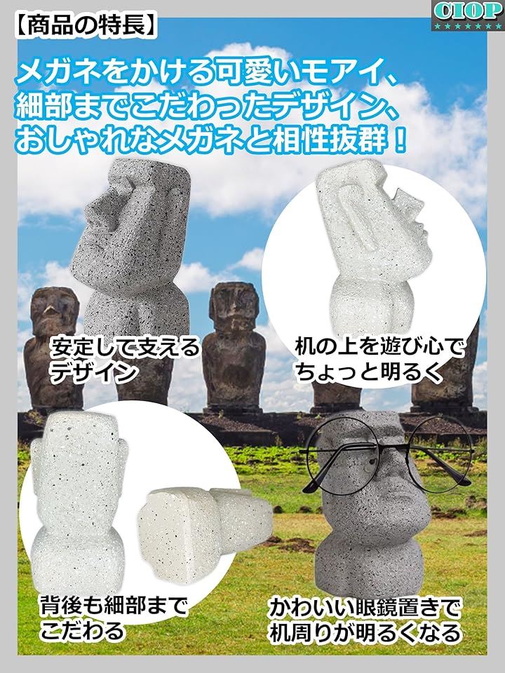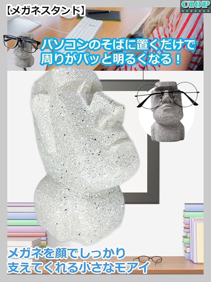 モアイ メガネスタンド 眼鏡 置き かわいい 可愛い おしゃれ フィギュア 卓上 メタルフレーム/サングラス/丸眼鏡/スクエア