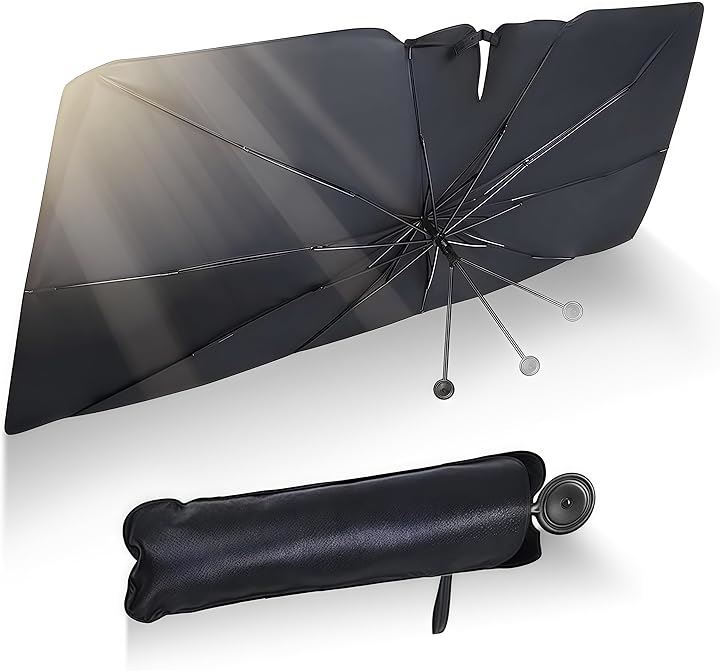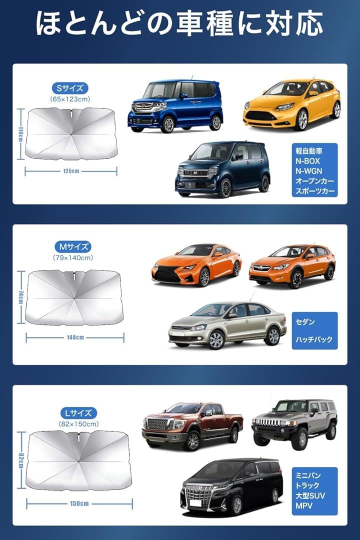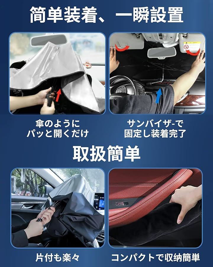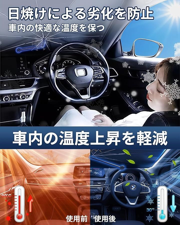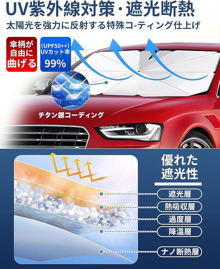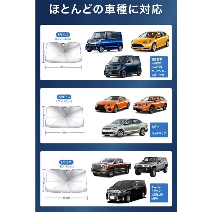 サンシェード 車 フロント 強遮光&高断熱 360°折れる中棒 強化10本骨 車用サンシェード UVカット 折りたたみ式 傘型 フロントサンシェード