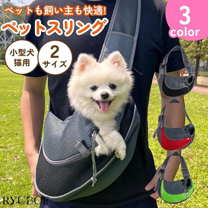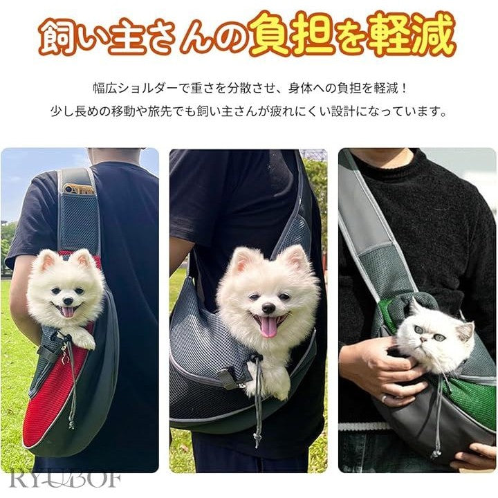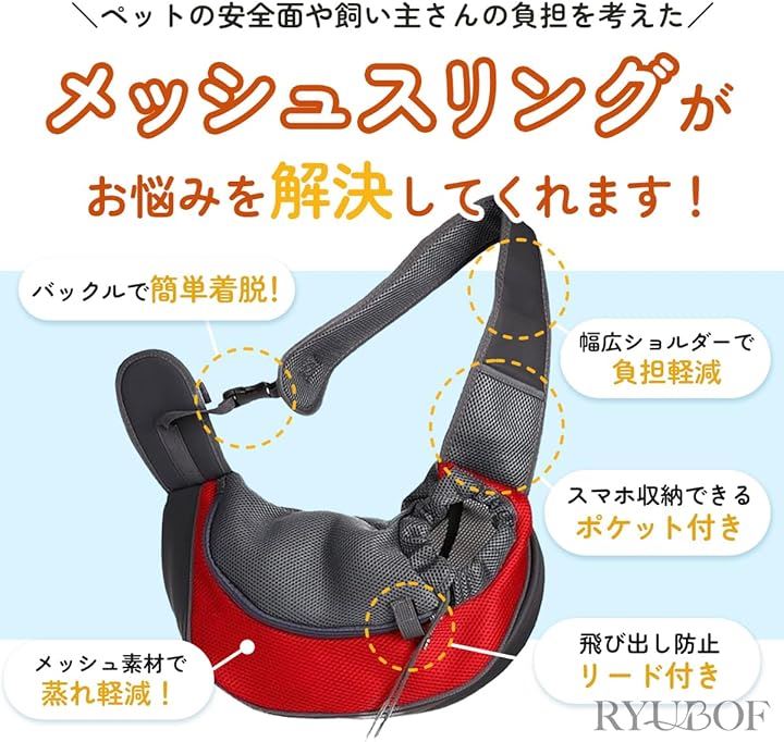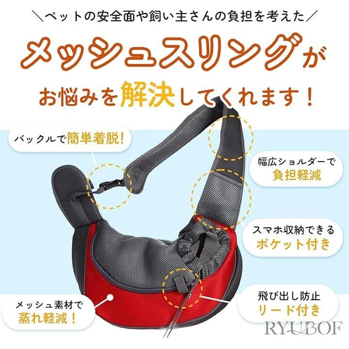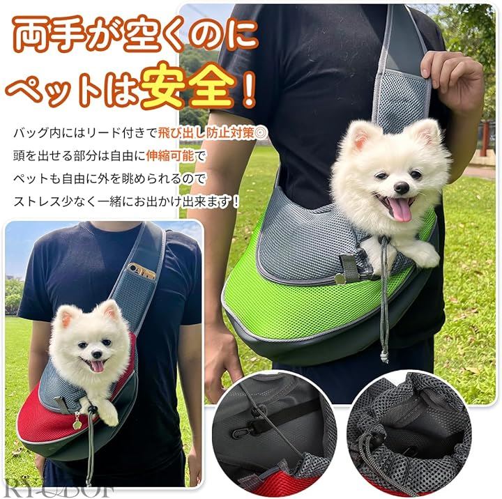 犬 抱っこ紐 ペットスリング メッシュ 小型犬 キャリーバッグ 飛び出し防止リード付き 通気性 夏用 軽量 調節可能 洗濯機対応 5kg対応 チワワ トイプードル