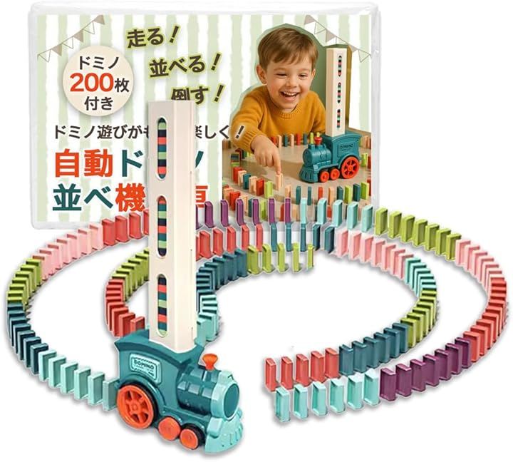 ドミノ 電車 自動設置 200枚セット 回転 電動 おもちゃ 子供 知育 室内 遊び プレゼント ギフト
