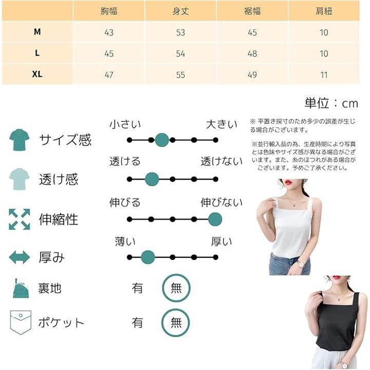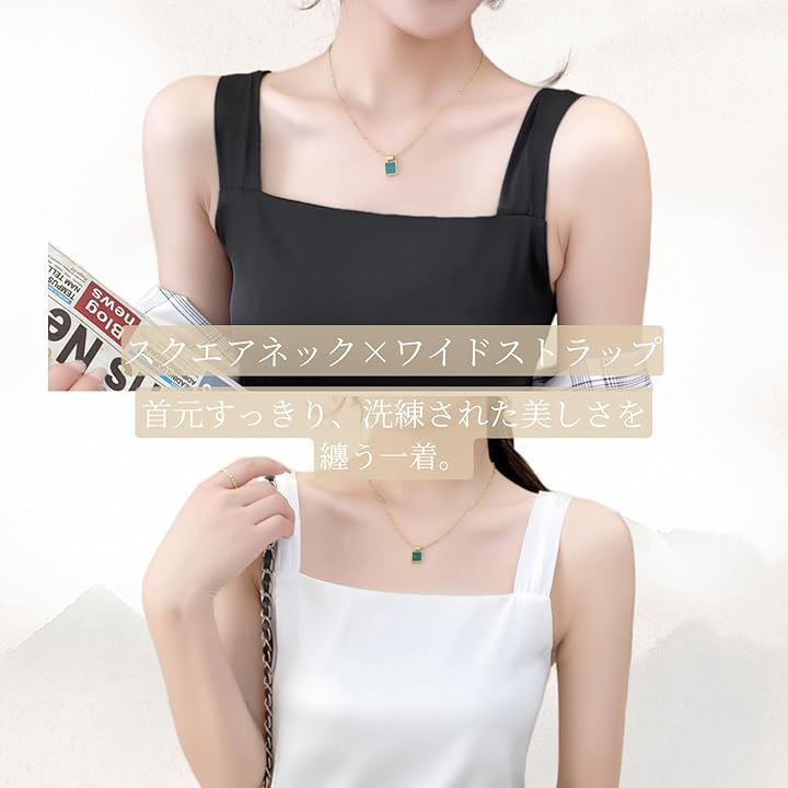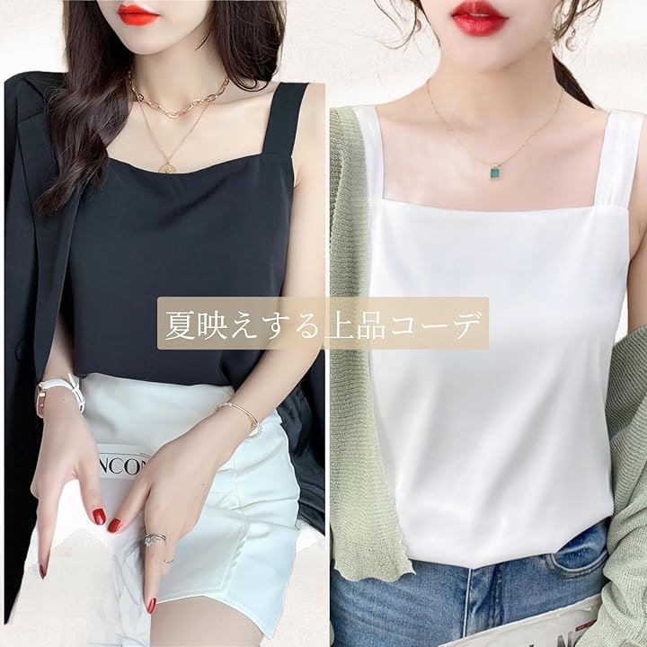 サテン キャミソール レディース インナー スクエアネック 肩紐隠し タンクトップ 重ね着