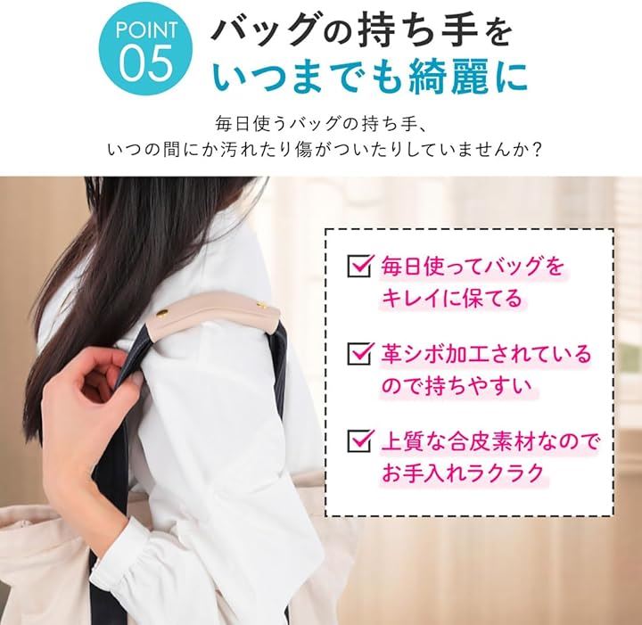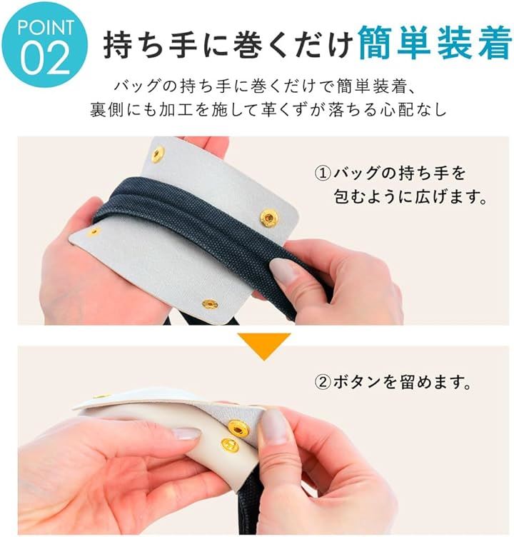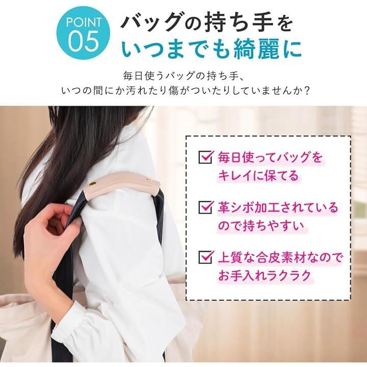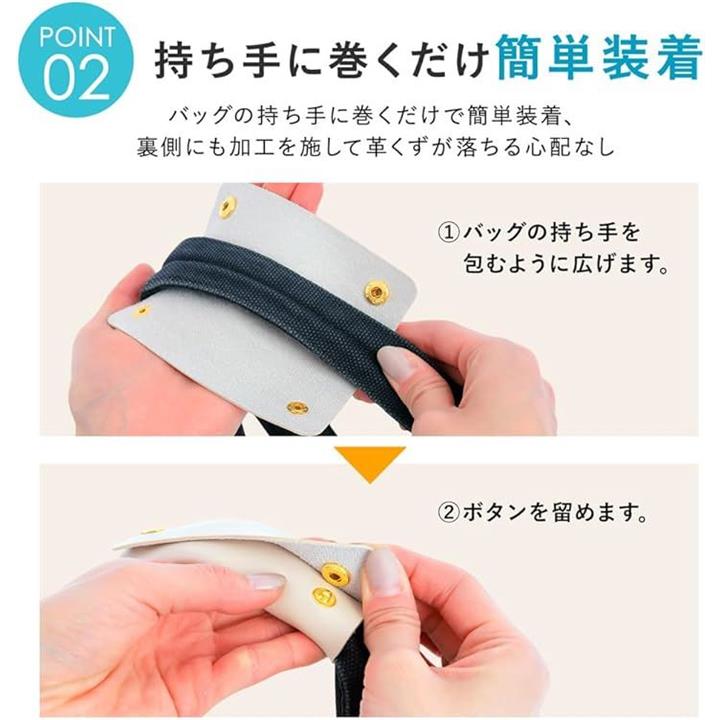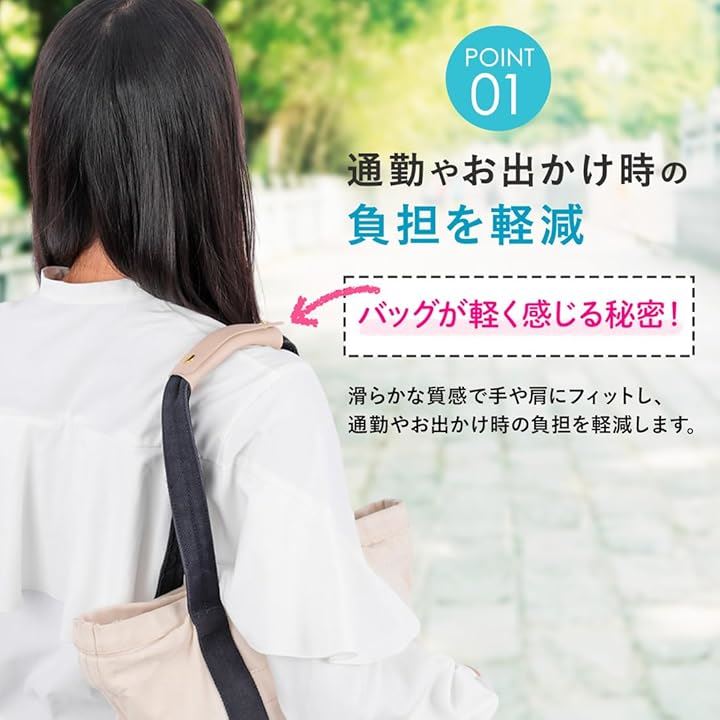 バッグの持ち手に取り付けるだけで、滑らかな質感が手や肩にフィットし、負担を和らげてくれます 通勤やショッピング、旅行など、あらゆるシーンで活躍します。
