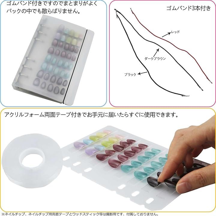 ネイルチップ収納 コンパクトタイプ 最大16セット収納可能 ネイルチップ保管 アクリルフォーム両面テープとスライドジッパーバッグ付き