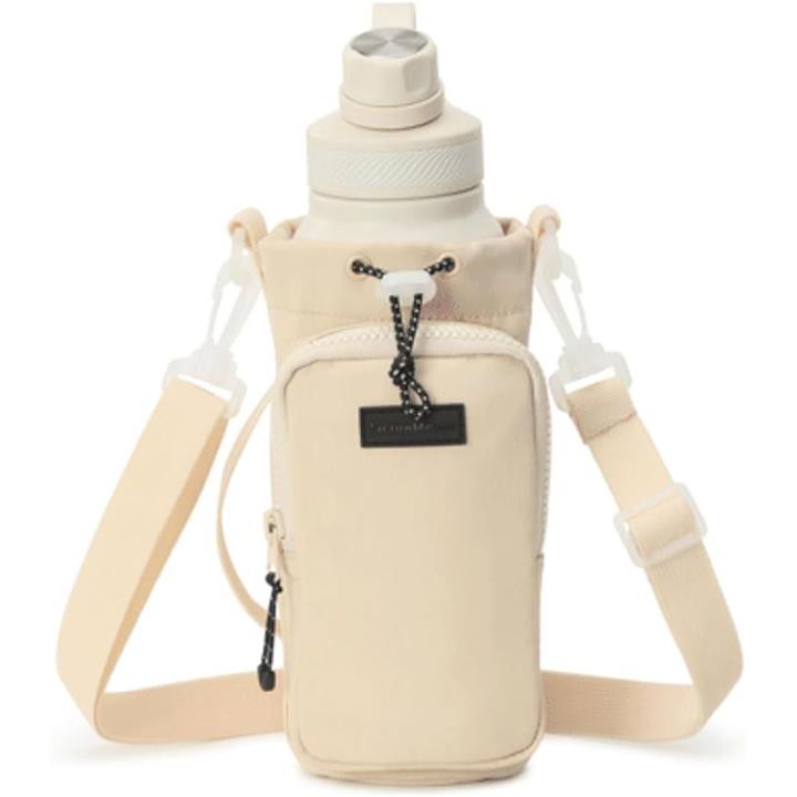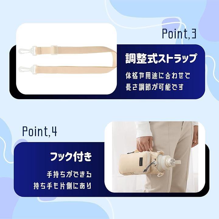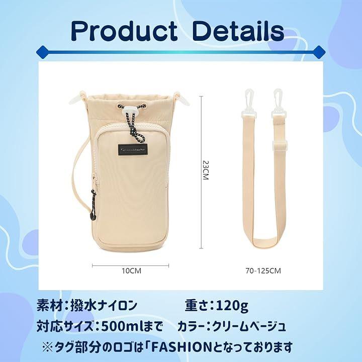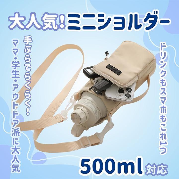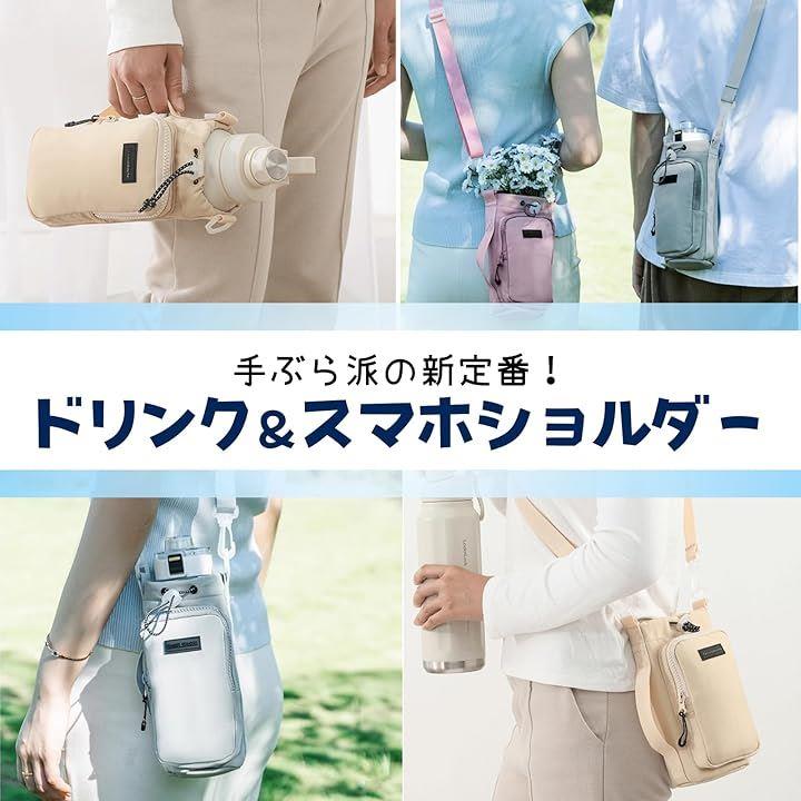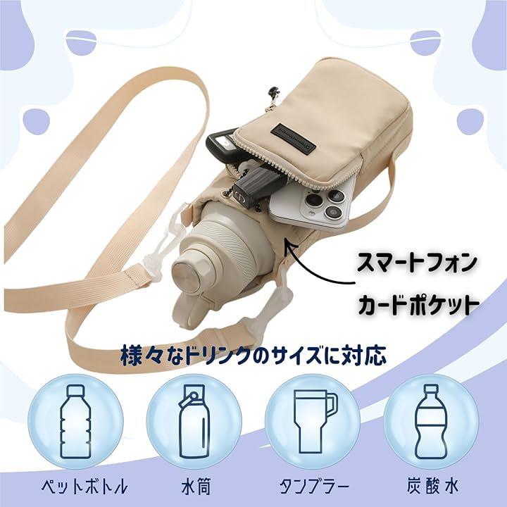 スマホも入る 水筒カバー ホルダー ケース スマホショルダー 撥水 軽量 肩掛け スマホポーチ クリームベージュ