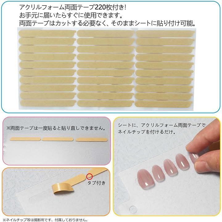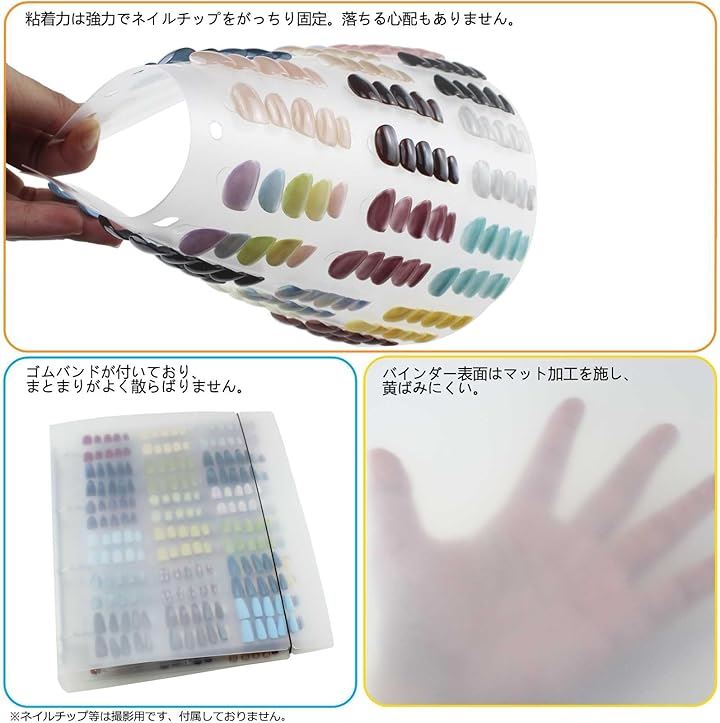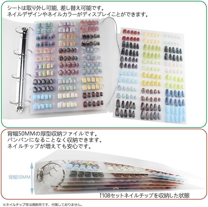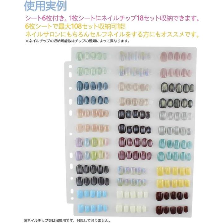 ネイルチップ収納 最大108セット収納可能 ネイルチップ保管 ネイルチップディスプレイ ネイルチップ収納ファイル 見本帳 ネイル展示 アクリルフォーム両面テープ220枚付き