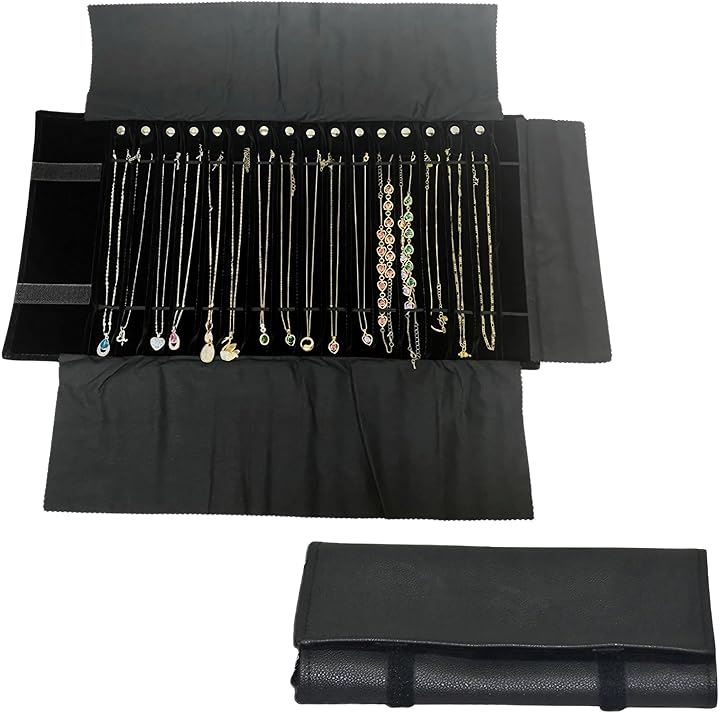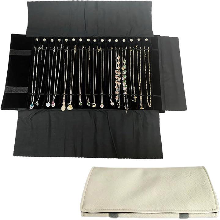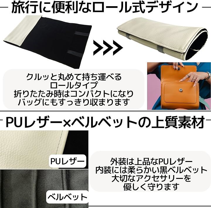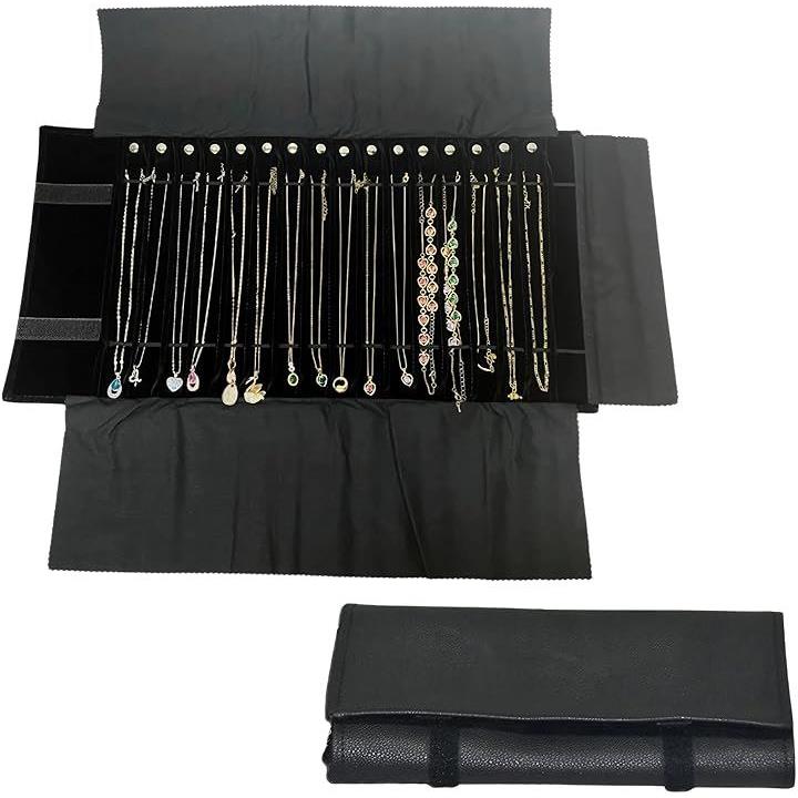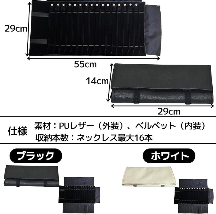 ジュエリーロール ネックレス収納ケース 16本収納可能 PUレザー トラベル 出張