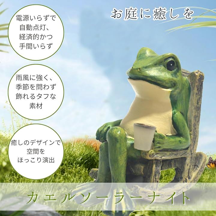 カエル 置物 ガーデンオーナメント かえる グッズ ガーデニング 庭 ライト