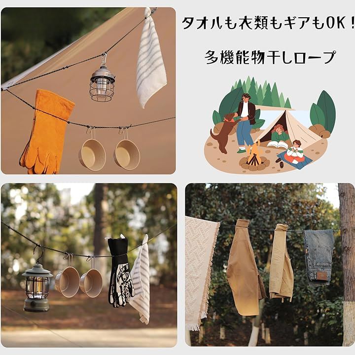 洗濯ロープ 物干しロープ 3M 旅行 室内 屋外 携帯便利 アウトドア 洗濯ひも 弾力 軽量