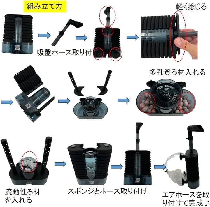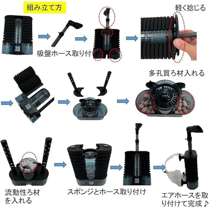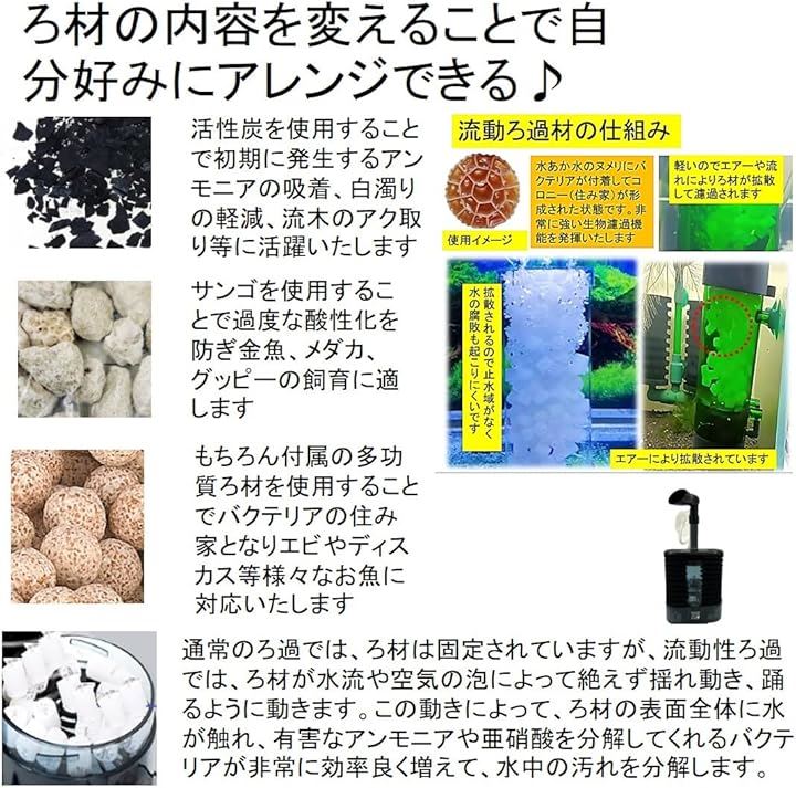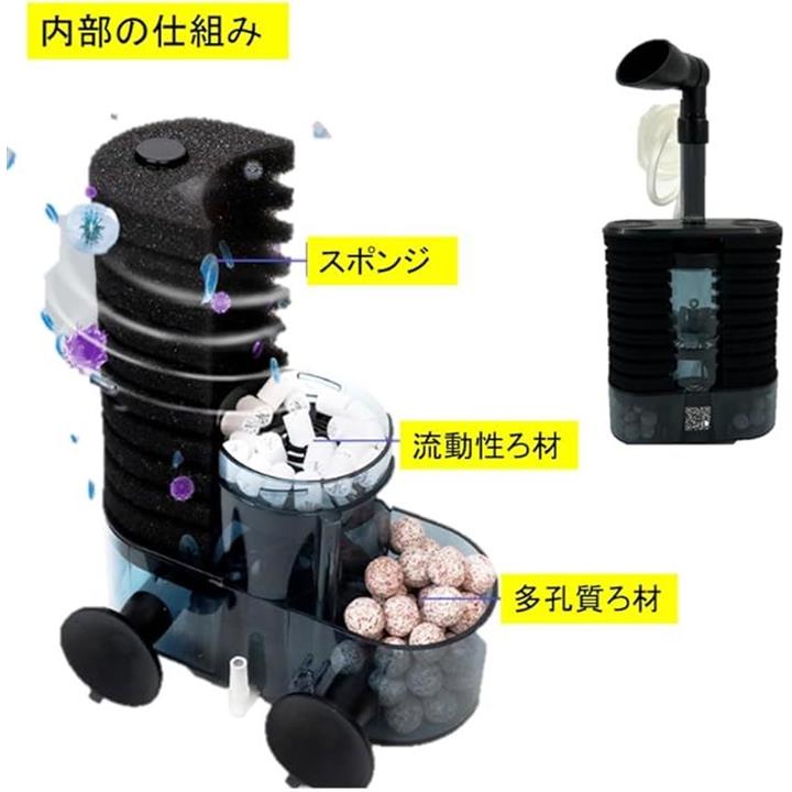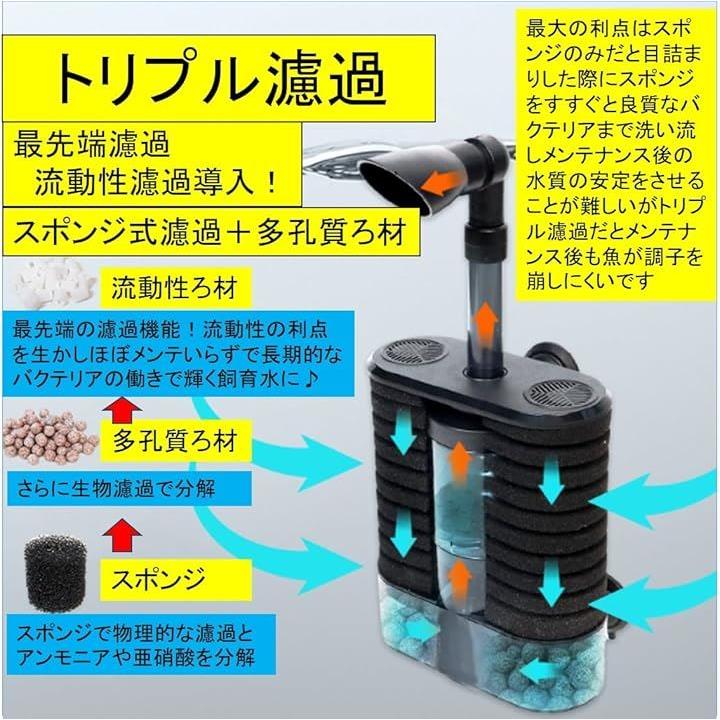 トリプル濾過 流動性濾過+スポンジフィルター+ 多孔質 ろ材入り 簡単設置 アクアリウム 水槽 ろ過 バクテリア 熱帯魚 金魚 メダカ エビ