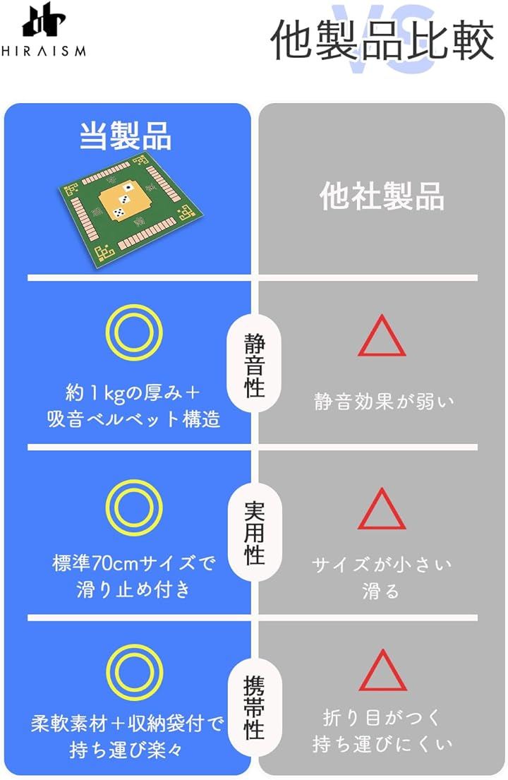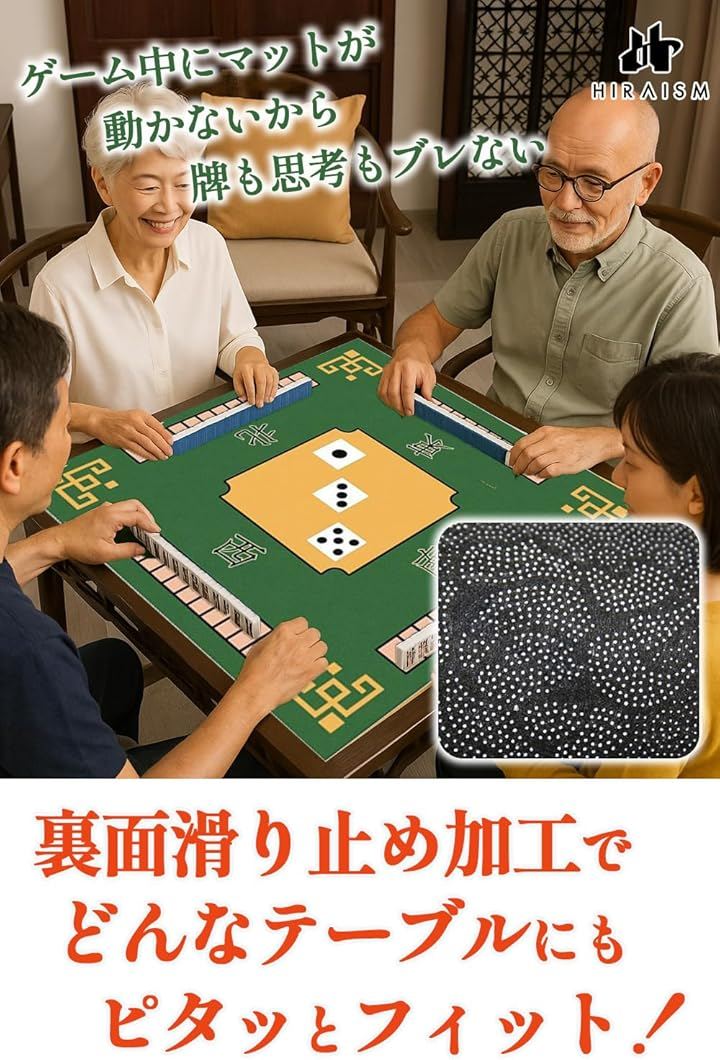 麻雀マット 滑り止め付き 厚手 防音 吸音 ズレにくい ノンスリップ 家庭用 初心者向け 持ち運び 収納袋付