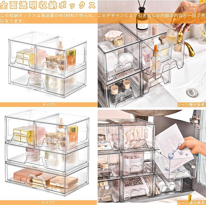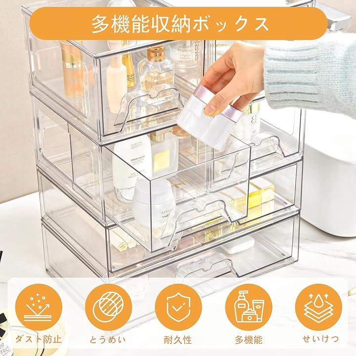 コスメ収納 化粧品収納ボックス アクセサリーケース メイクケース 小物収納 アクリル 大容量 強い耐久性 整理簡単 引き出し小物入れ おしゃれ