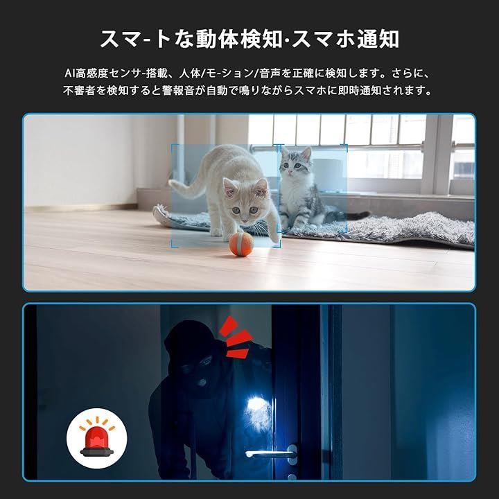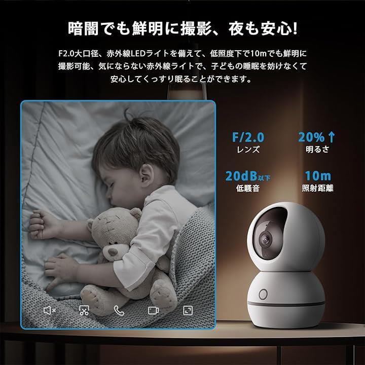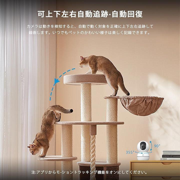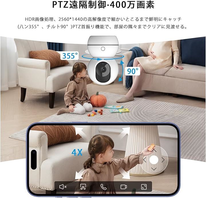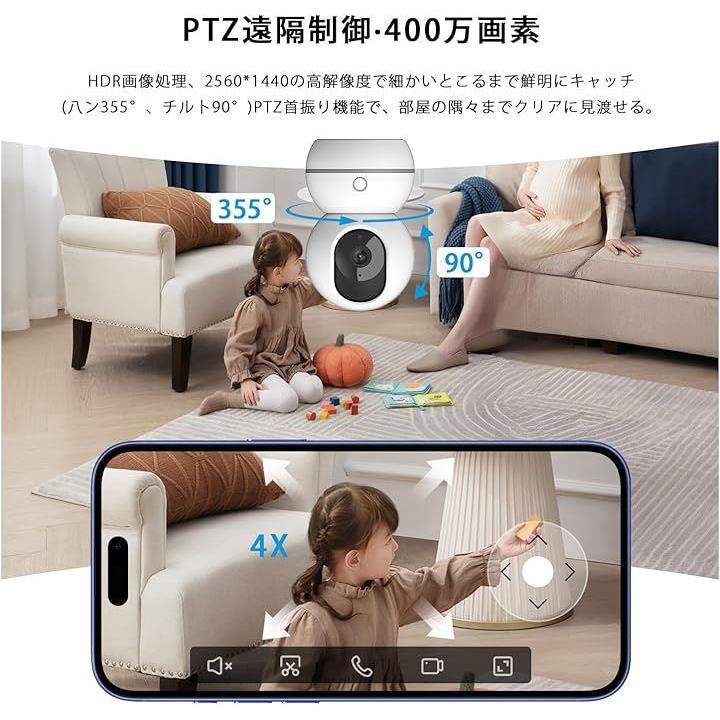 2025年新型 ペットカメラ 400万画素 2K ベイビーモニター ワイヤレス屋内防犯 監視355度 ベビー 老人 ペット見守り 2.4GWi-Fi対応 スマホ対応