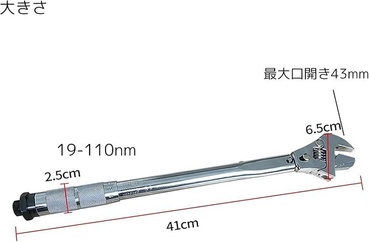 クイックリリース調節式トルクレンチスパナ 19–110NM 最大口幅43mm CrV製 滑り止めグリップ 高耐久 ミニスプリット・冷凍システム用