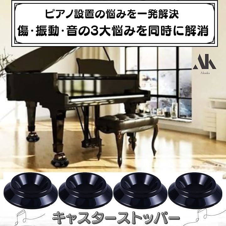 ピアノ キャスターストッパー 保護 乗せるだけ 滑り止め 傷防止 防音 4個セット