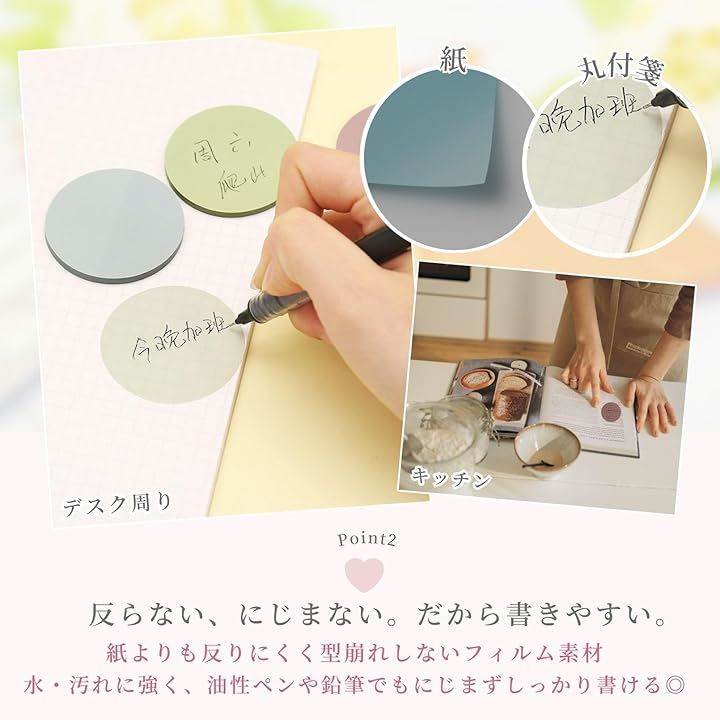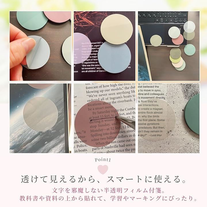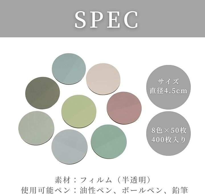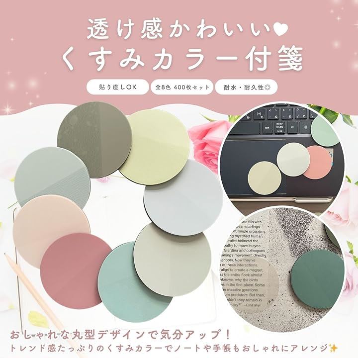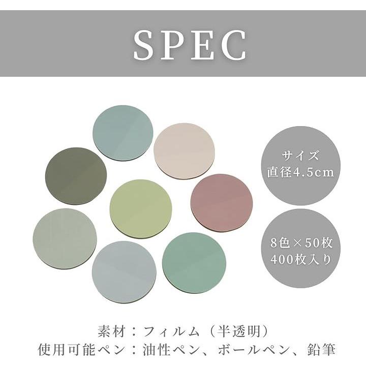 付箋 透明 丸 フィルム ふせん くすみカラー 透ける 8色 400枚