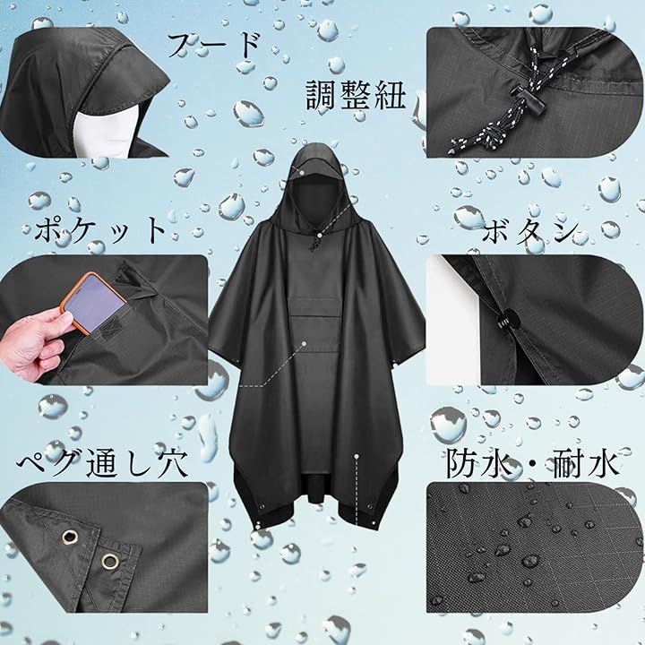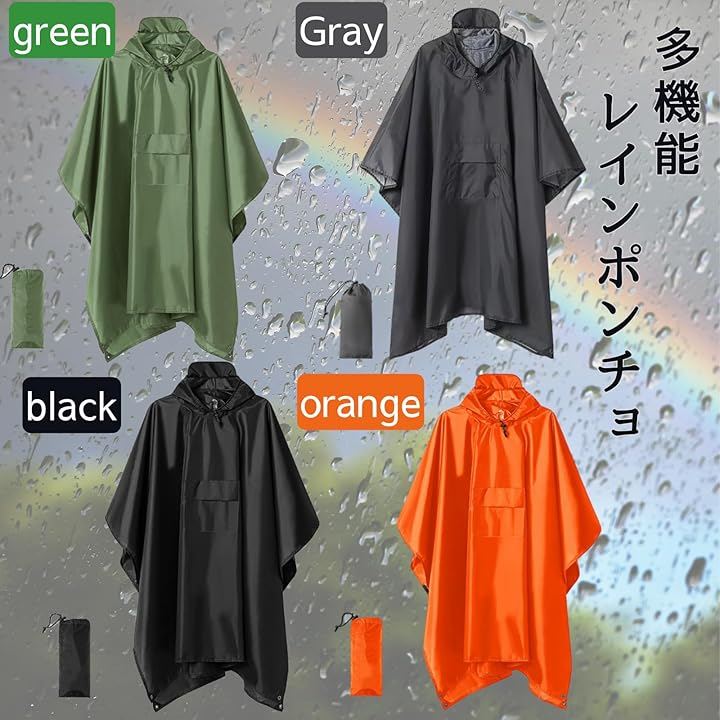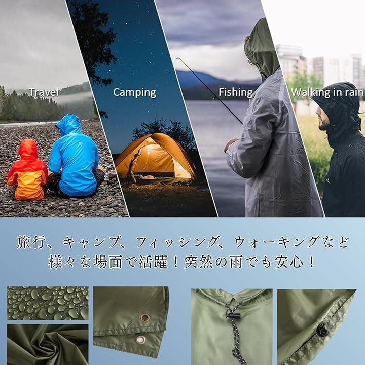 レインポンチョ 男女兼用 防水 軽量 自転車 送迎 レインコート リュック対応 無地 キャンプ 収納袋付き 豪雨 対策 ウェア 雨がっぱ 雨合羽