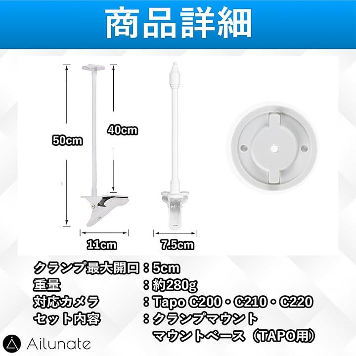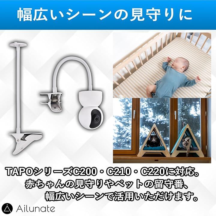 フレキシブルマウント TP-Link 監視カメラ Tapo クランプ C200 C210 C220対応 角度調整自由 カメラ固定用ブラケット ペット見守り 40cm