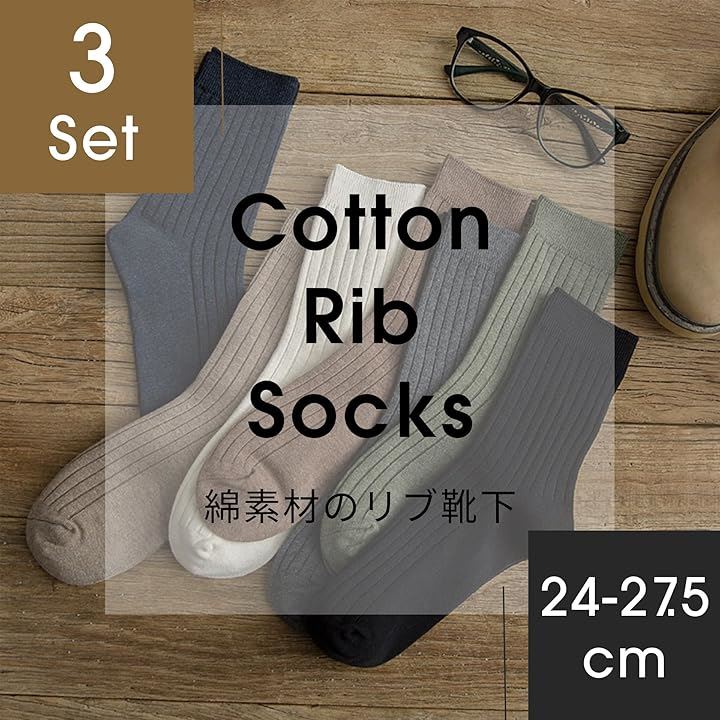 こもれび屋 メンズ 靴下 3足セット 綿混 リブ編 ソックス