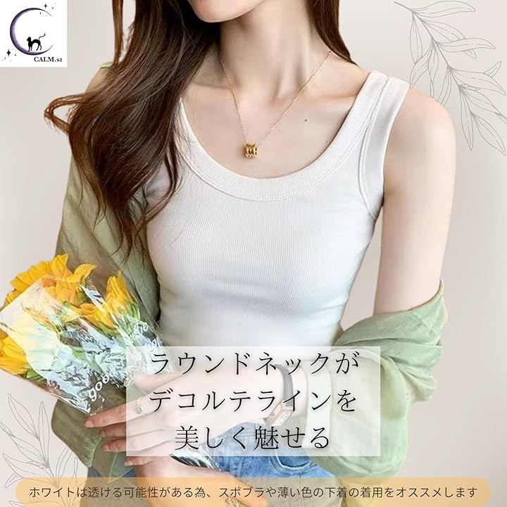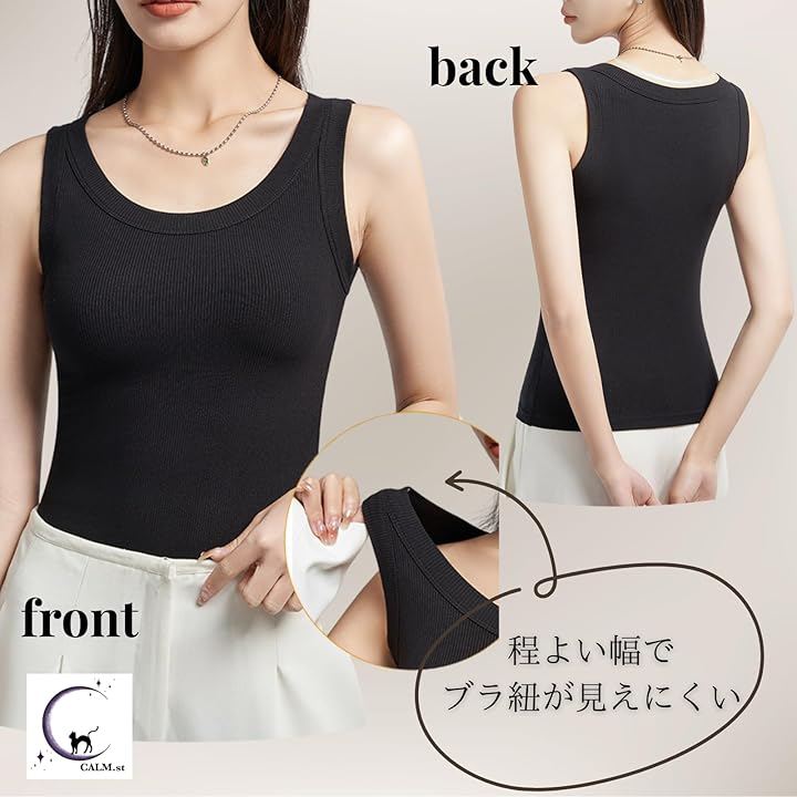 [CALM.st] タンクトップ キャミソール レディース リブ ブラ紐隠し インナー 伸縮性 細身 Uネック |