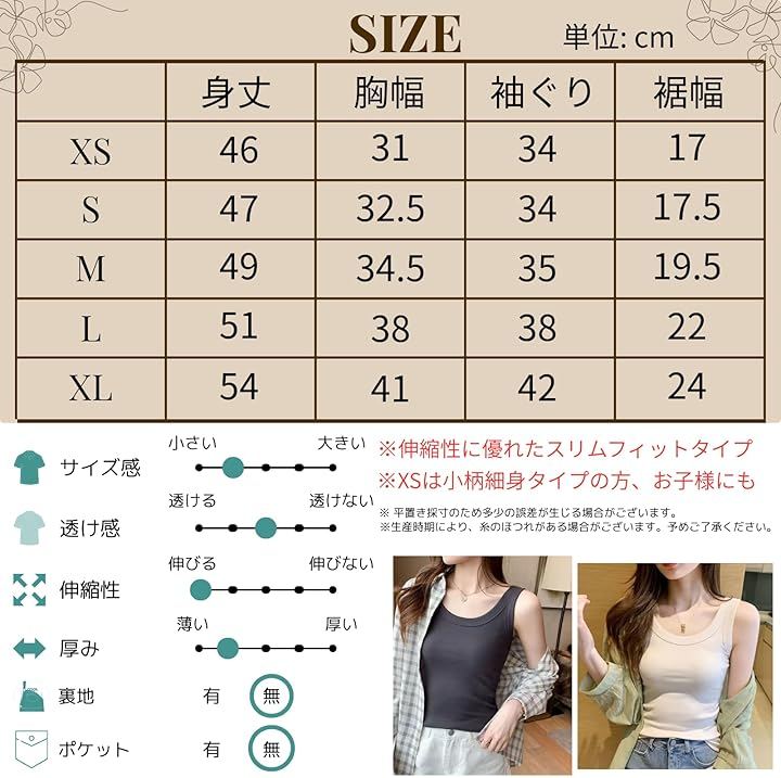 ブラ紐が見えにくいから「タンクトップ レディース」「インナー タンクトップ」として通勤・お出かけ・普段使いに。