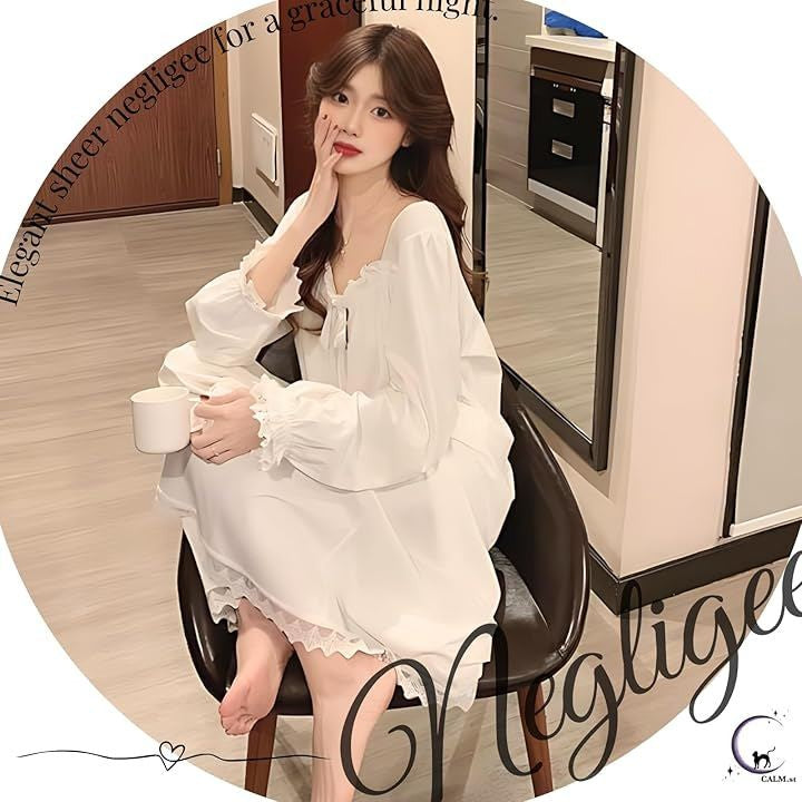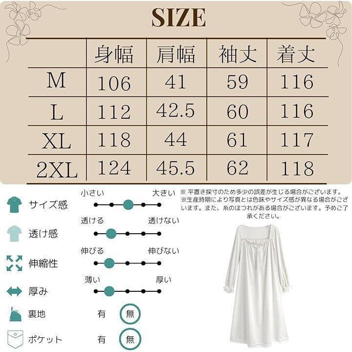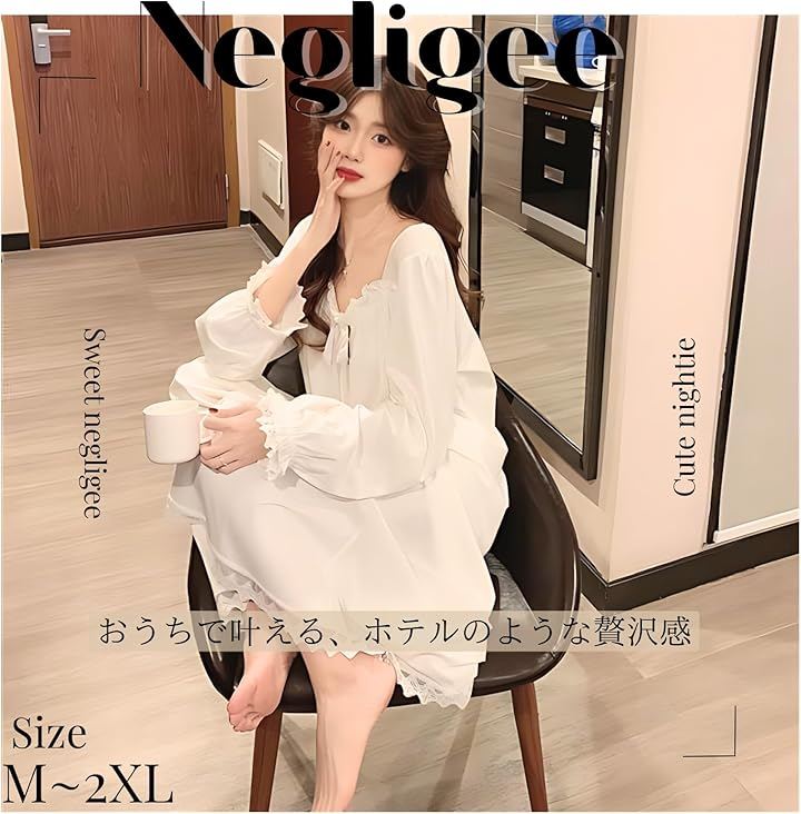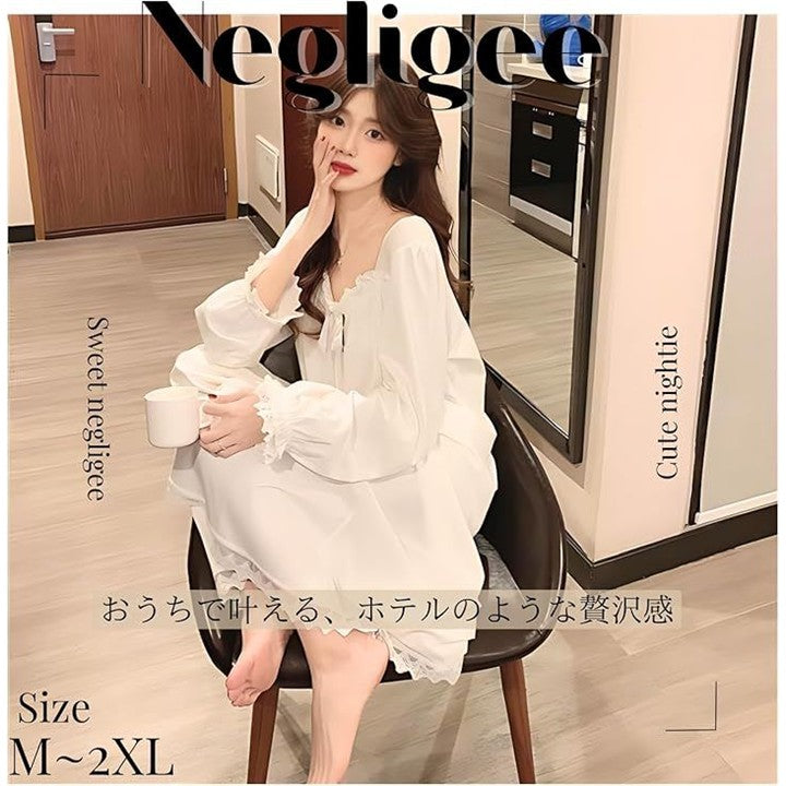 ネグリジェ パジャマ ワンピース 長袖 レディース 姫系 ルームウェア フリル セクシー 部屋着