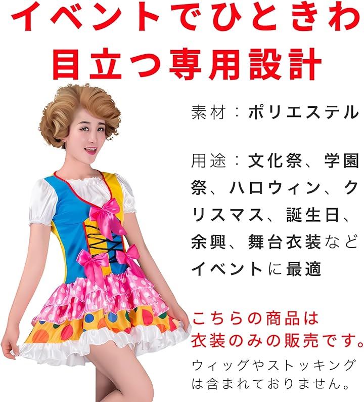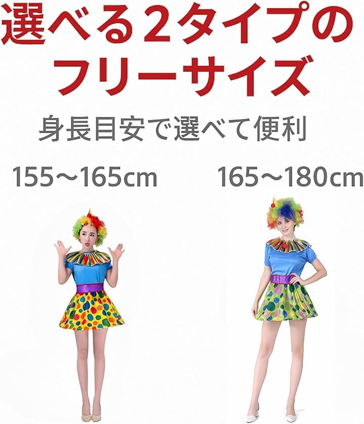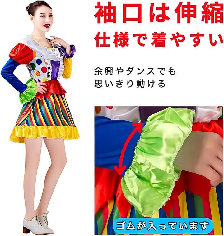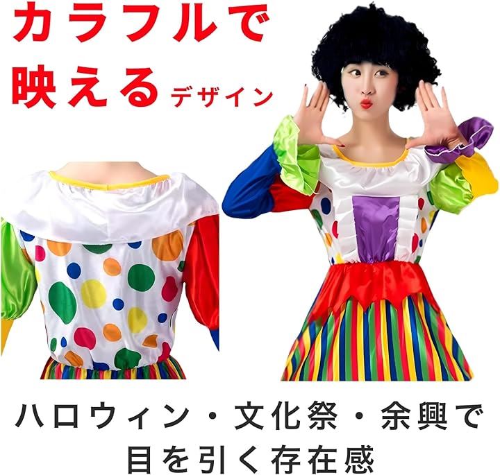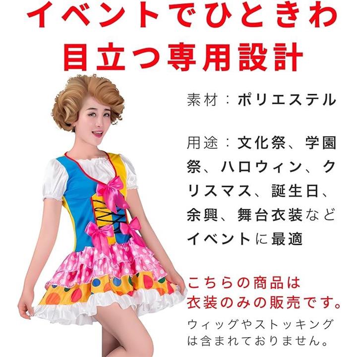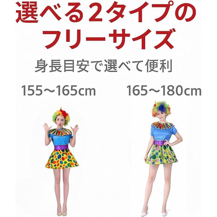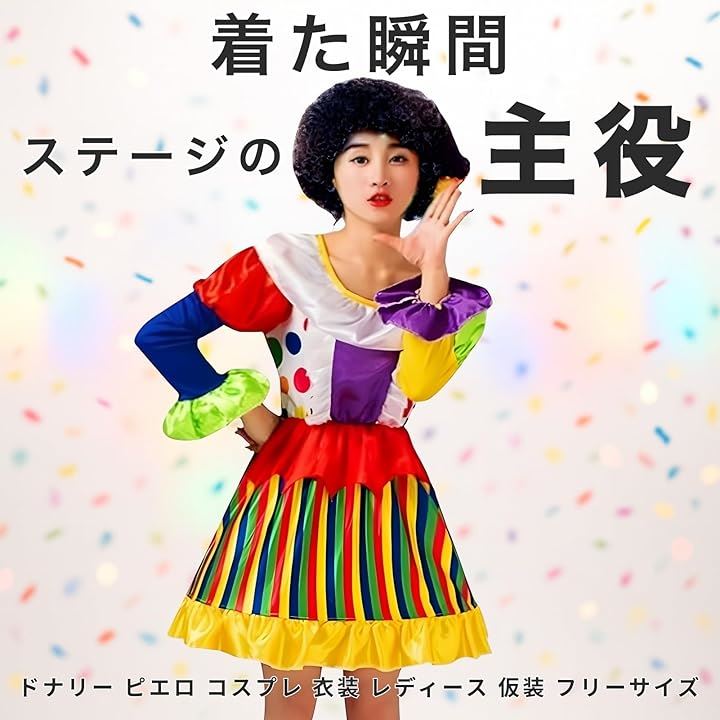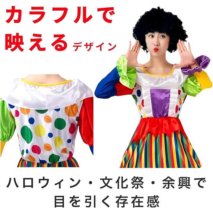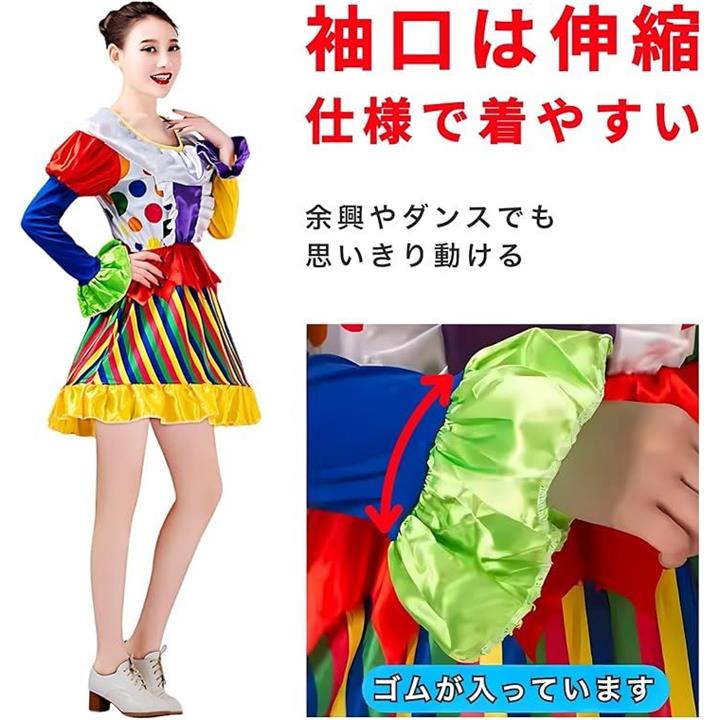ピエロ コスプレ 衣装 レディース クラウン サーカス 仮装 コスチューム カラフル ハロウィン 余興 二次会 フリーサイズ