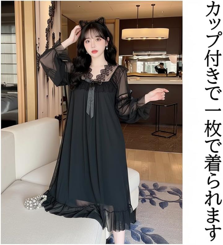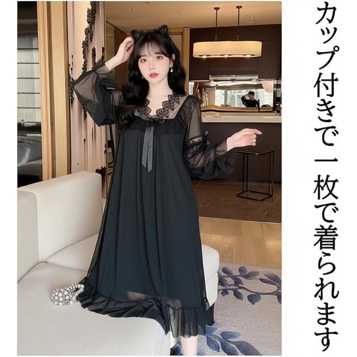 ネグリジェ プリンセス ナイトウェア ルーム ワンピース 姫系 可愛い セクシー レース カップ付き