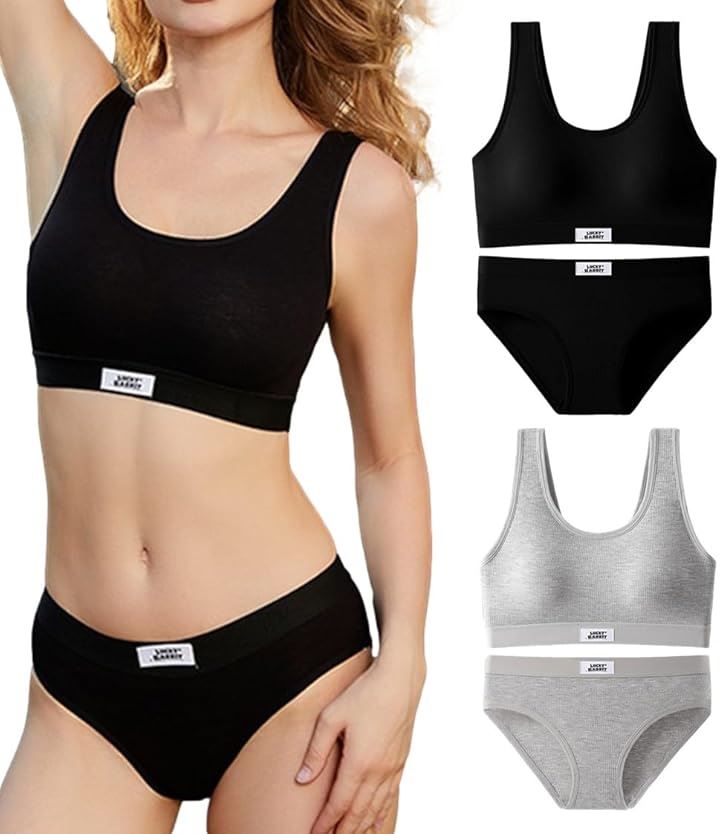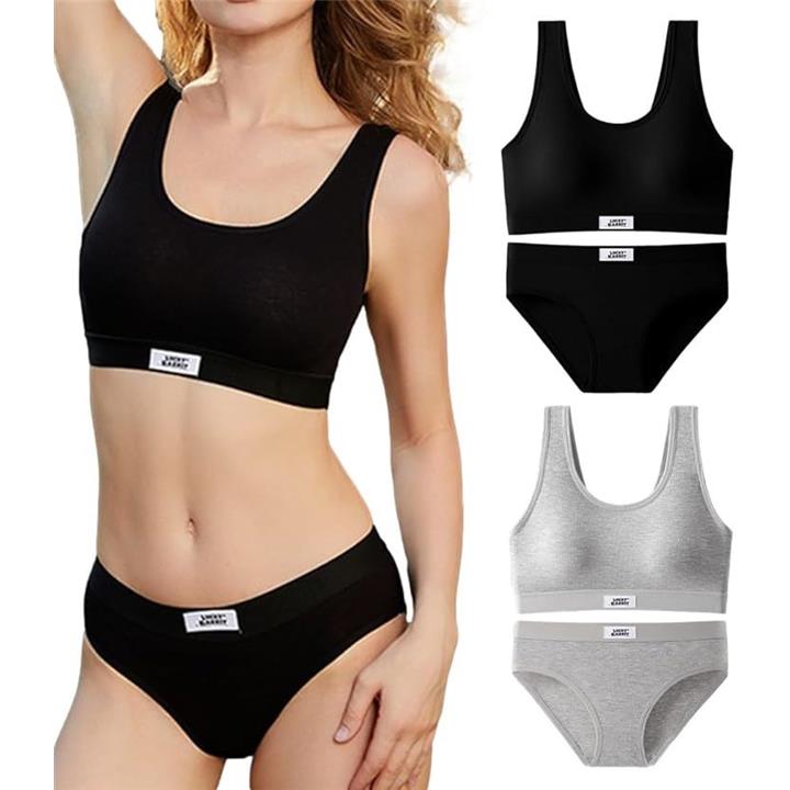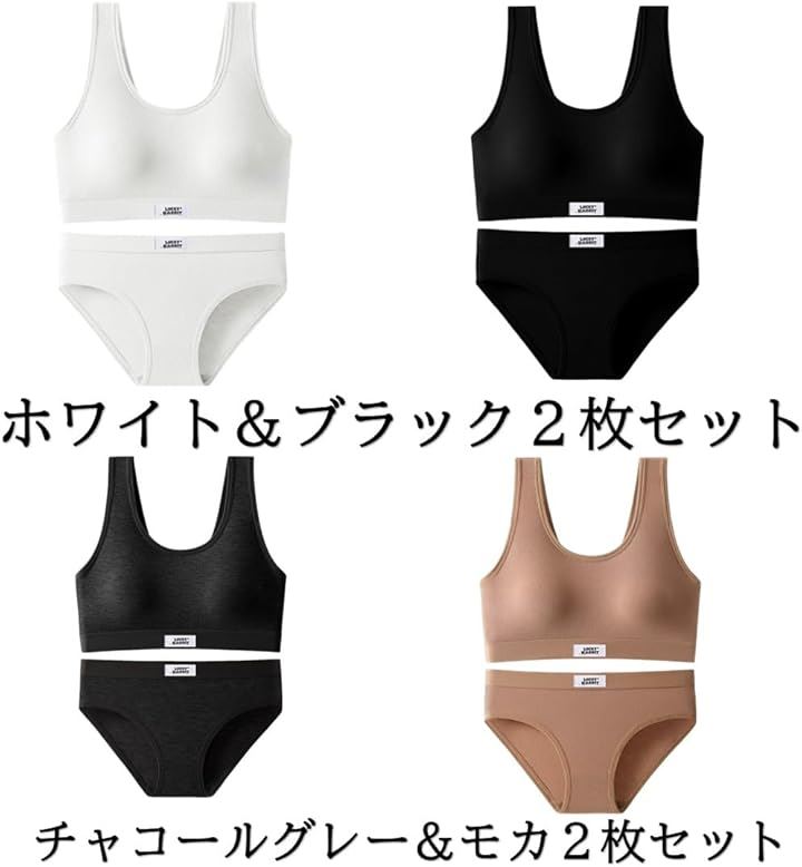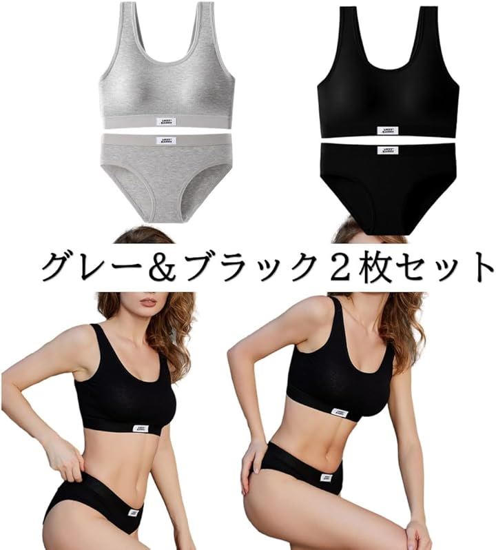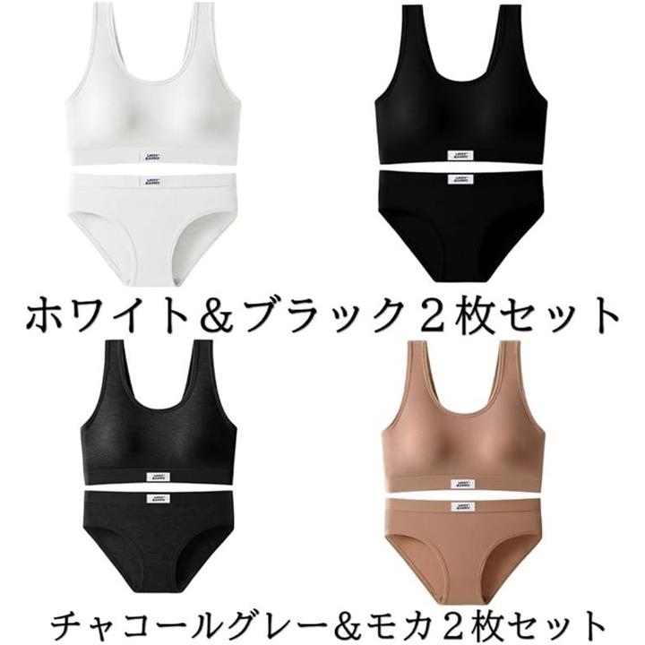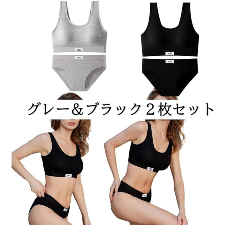 スポーツブラ 上下 セット 下着 レディース ブラジャー ショーツ 2枚 フリーサイズ ノンワイヤー