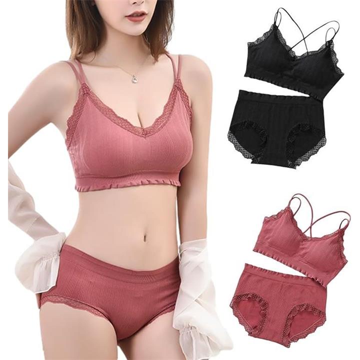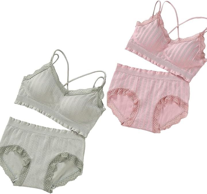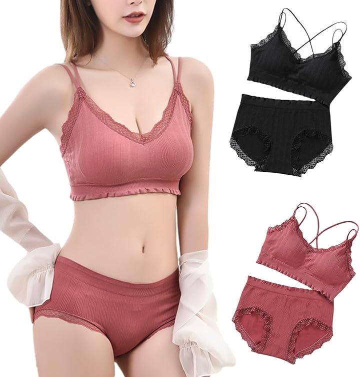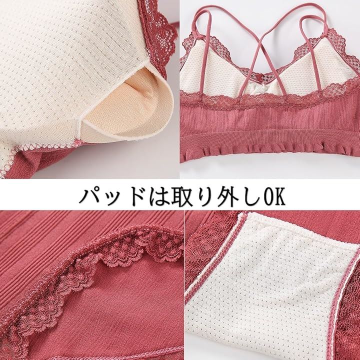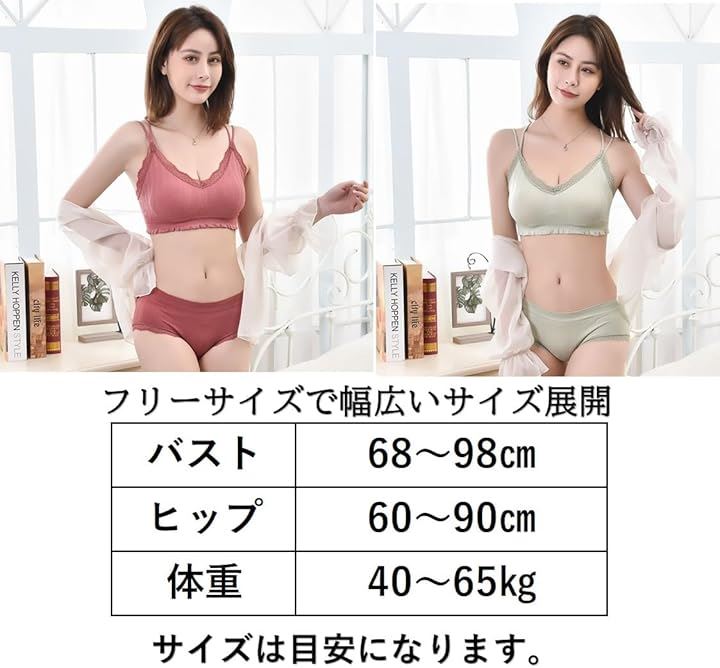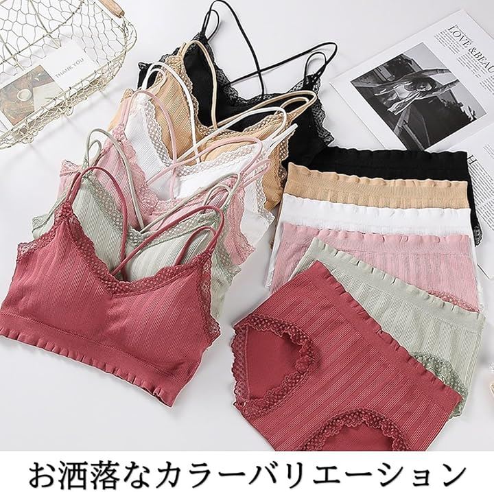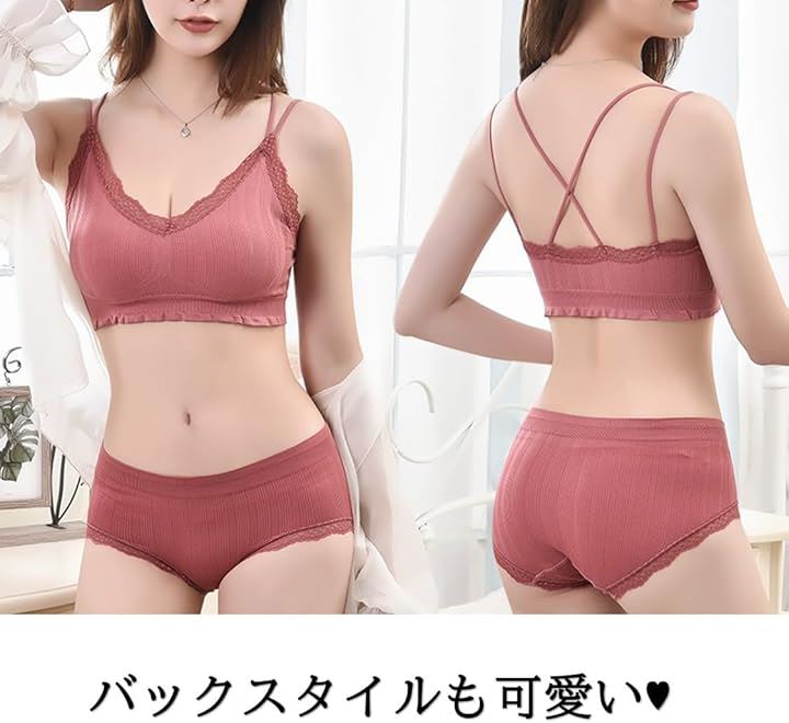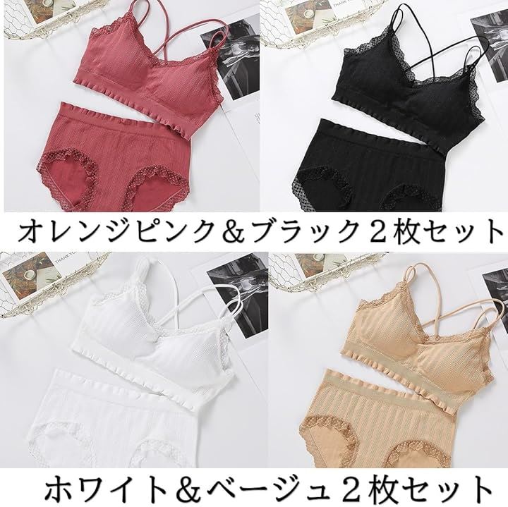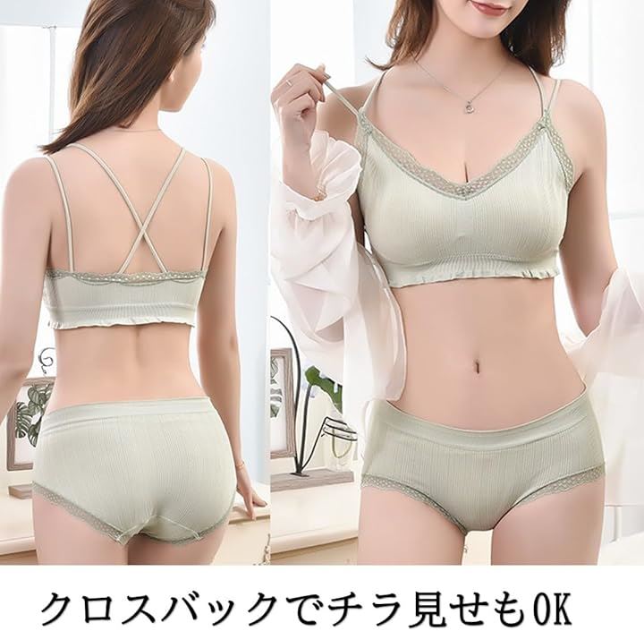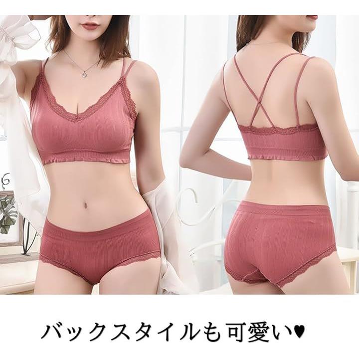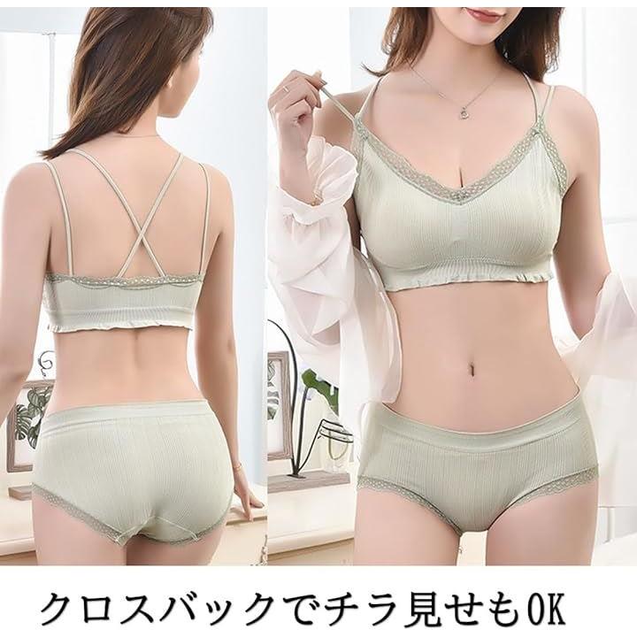 下着 レディース 上下 セット ノンワイヤー ブラ バッククロス 2枚 フリーサイズ レース ショーツ 付