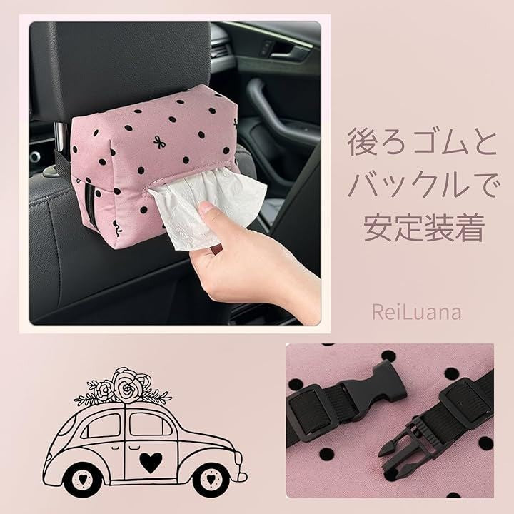 ティッシュ ケース ゴム付き 車 インテリア 安定 装着 ホルダー ボックス カー 用品 ベビーカー 人気 可愛い お洒落 洗える 洗面所 キッチン 上品 シンプル 簡単 取り付け 掛けるだけ