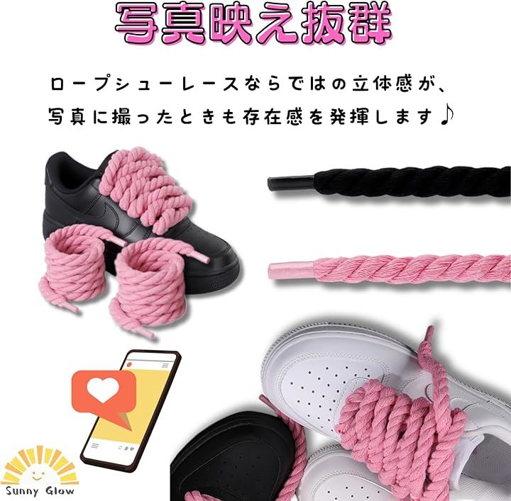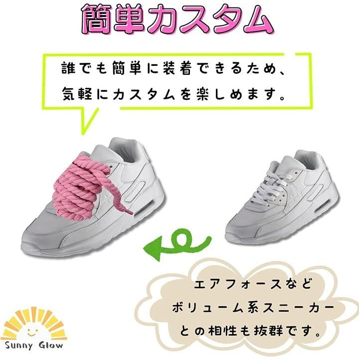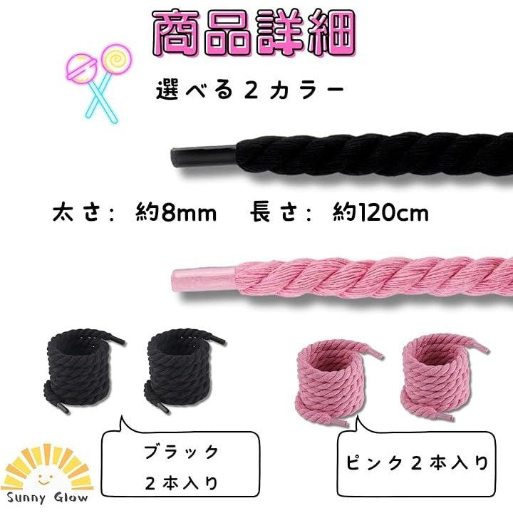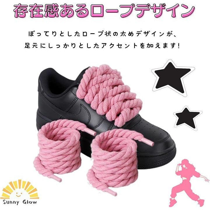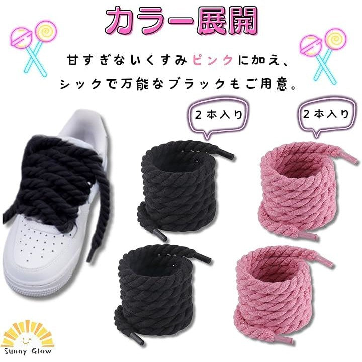 ロープ 靴紐 カスタム用 シューレース 8mmx120cm 太い靴紐 エアフォース 靴ひも 大人かわいい 2本入り