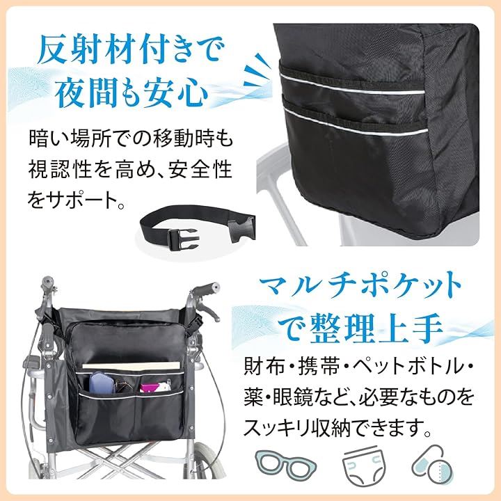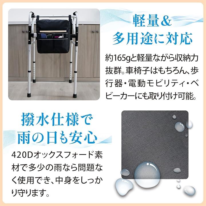 車いす用バッグ 大容量 軽量 防水 収納便利 高齢者 障害者用 ポケット付き