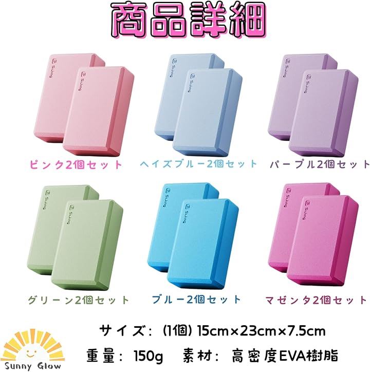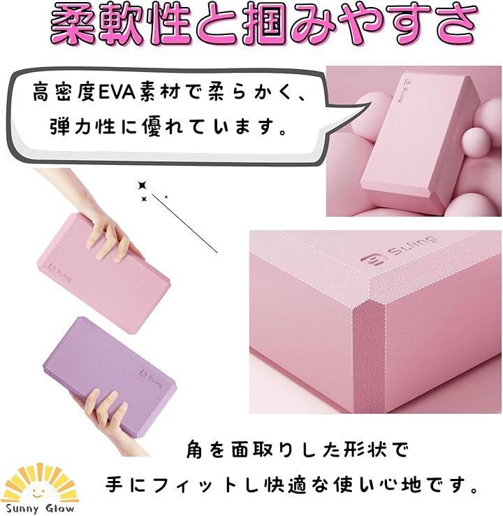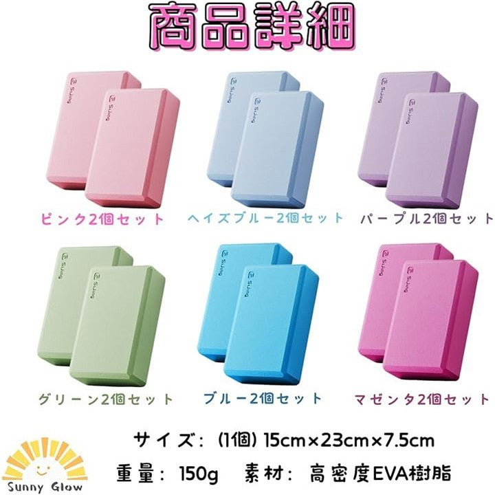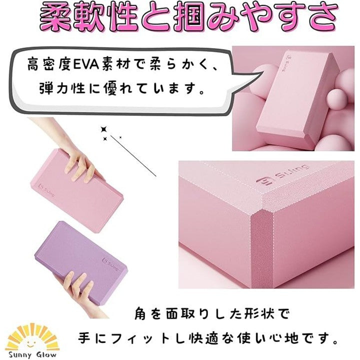 ヨガブロック 2個セット 高密度EVA 軽量 撥水 水洗い可 ヨガブリック 角面取り 初心者 フィットネス ストレッチ補助